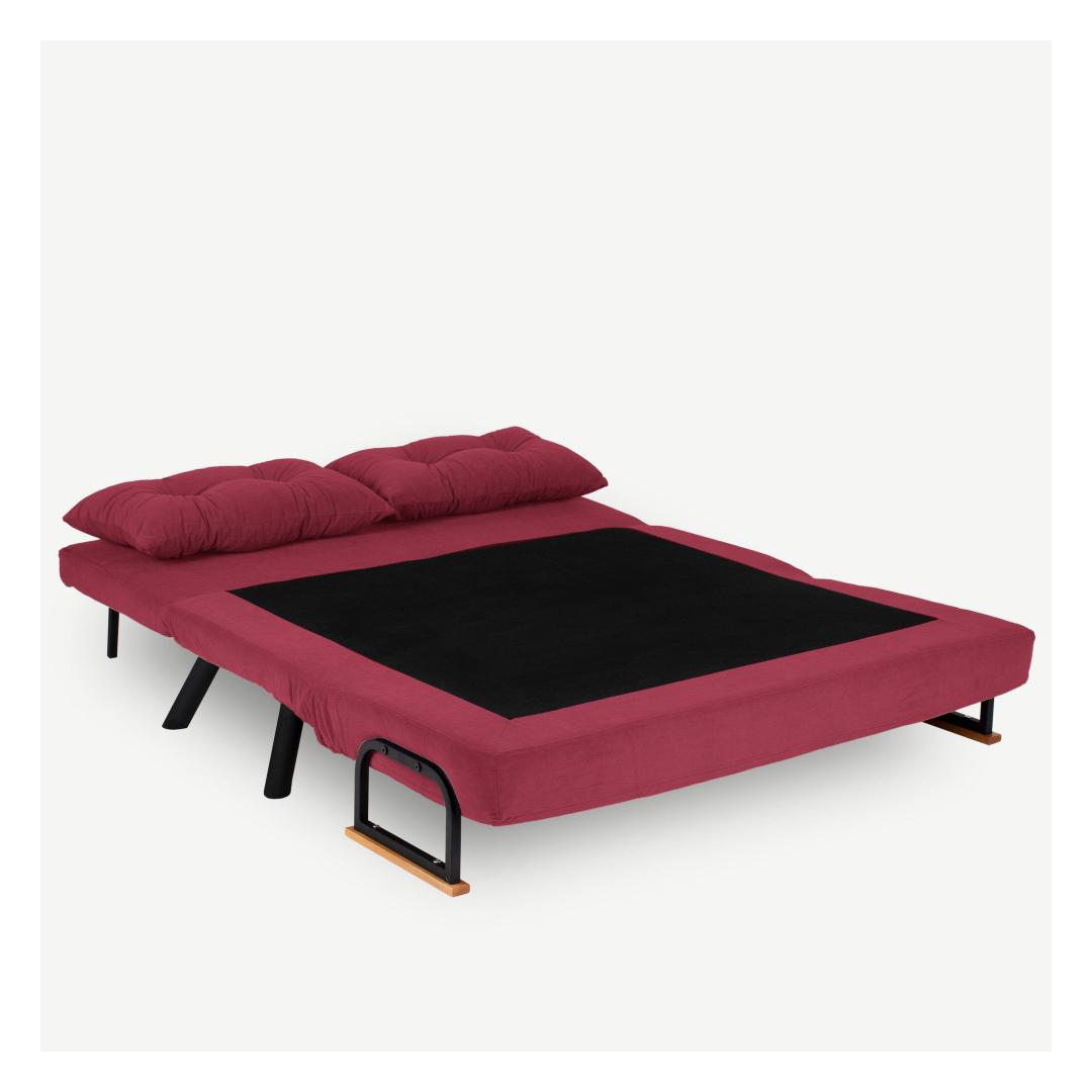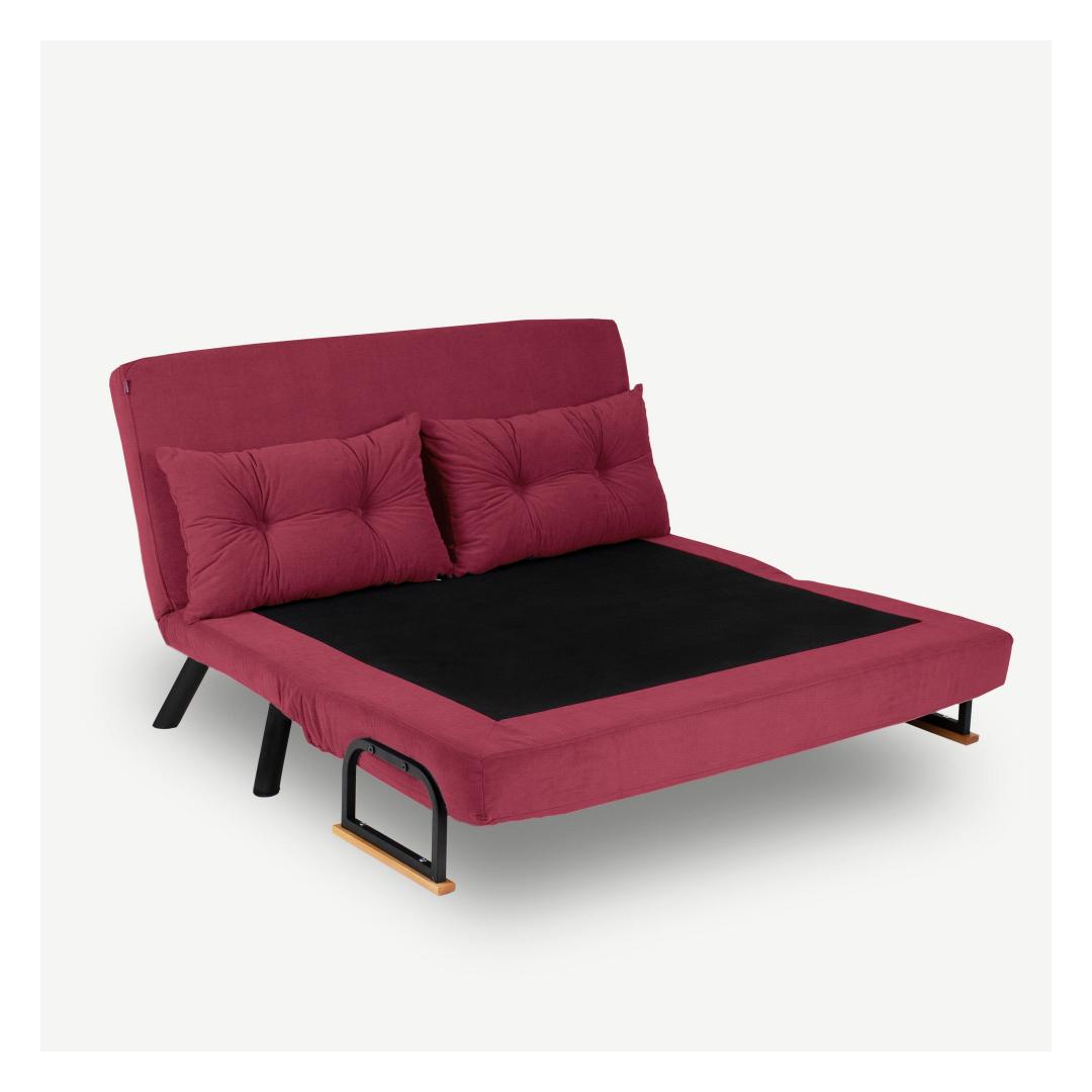 Transform your living space with our 2-Seat Sofa-Bed in a stunning maroon color. This versatile piece is not just a sofa, but also a comfortable bed for your guests to sleep on.