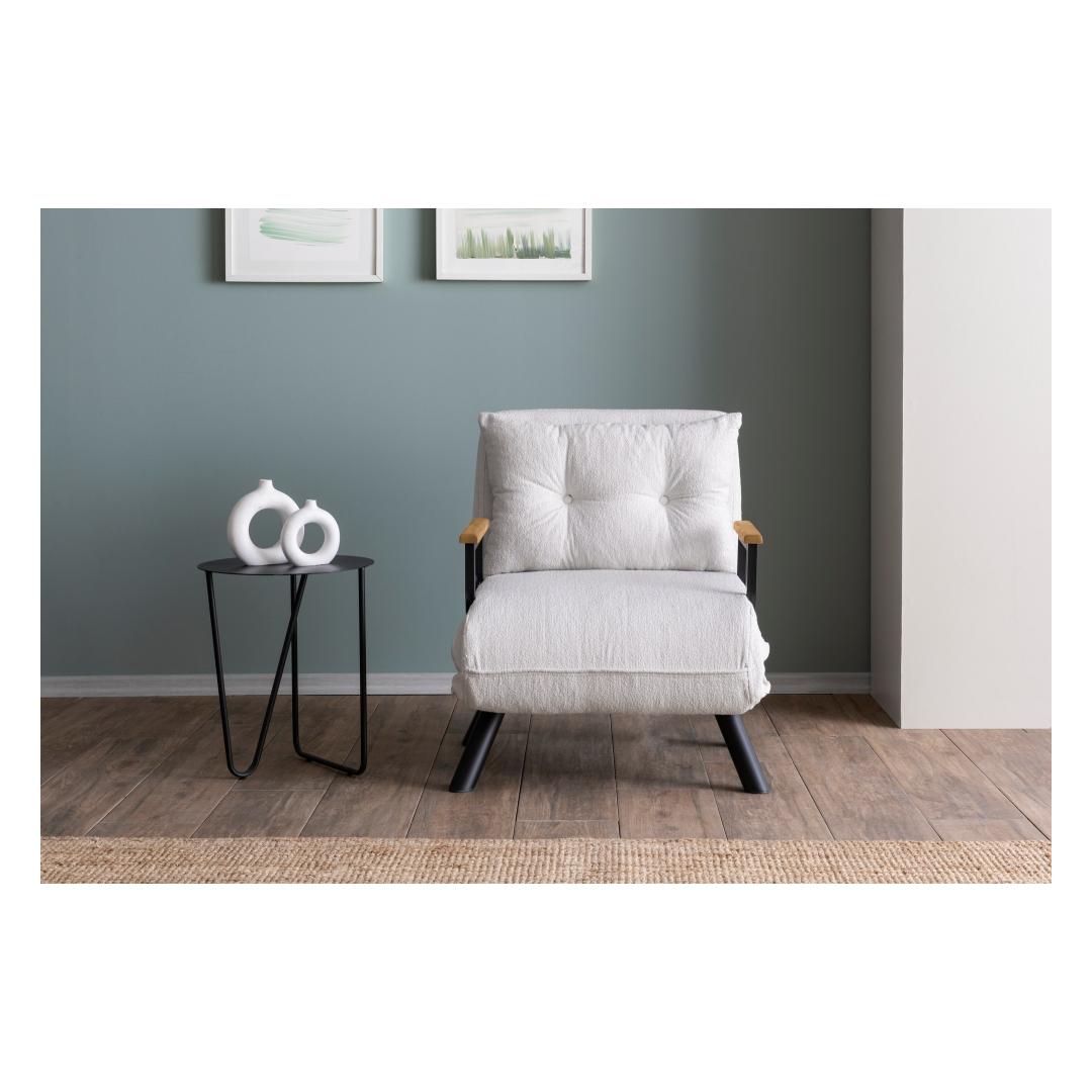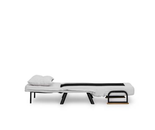 With its easy-to-use mechanism, this sofa-bed can be quickly converted into a bed for overnight guests. The bed size of 175 cm width and 60 cm depth ensures a cozy sleeping space for one person. The sleek white color adds a touch of elegance to any room, making it a stylish addition to your home decor.