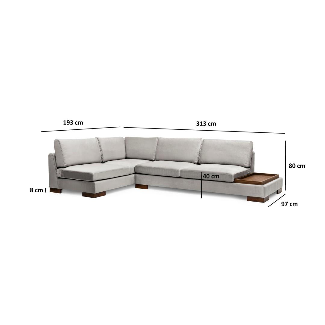 Diivan Tulip Corner Left With Pouf - Light Grey