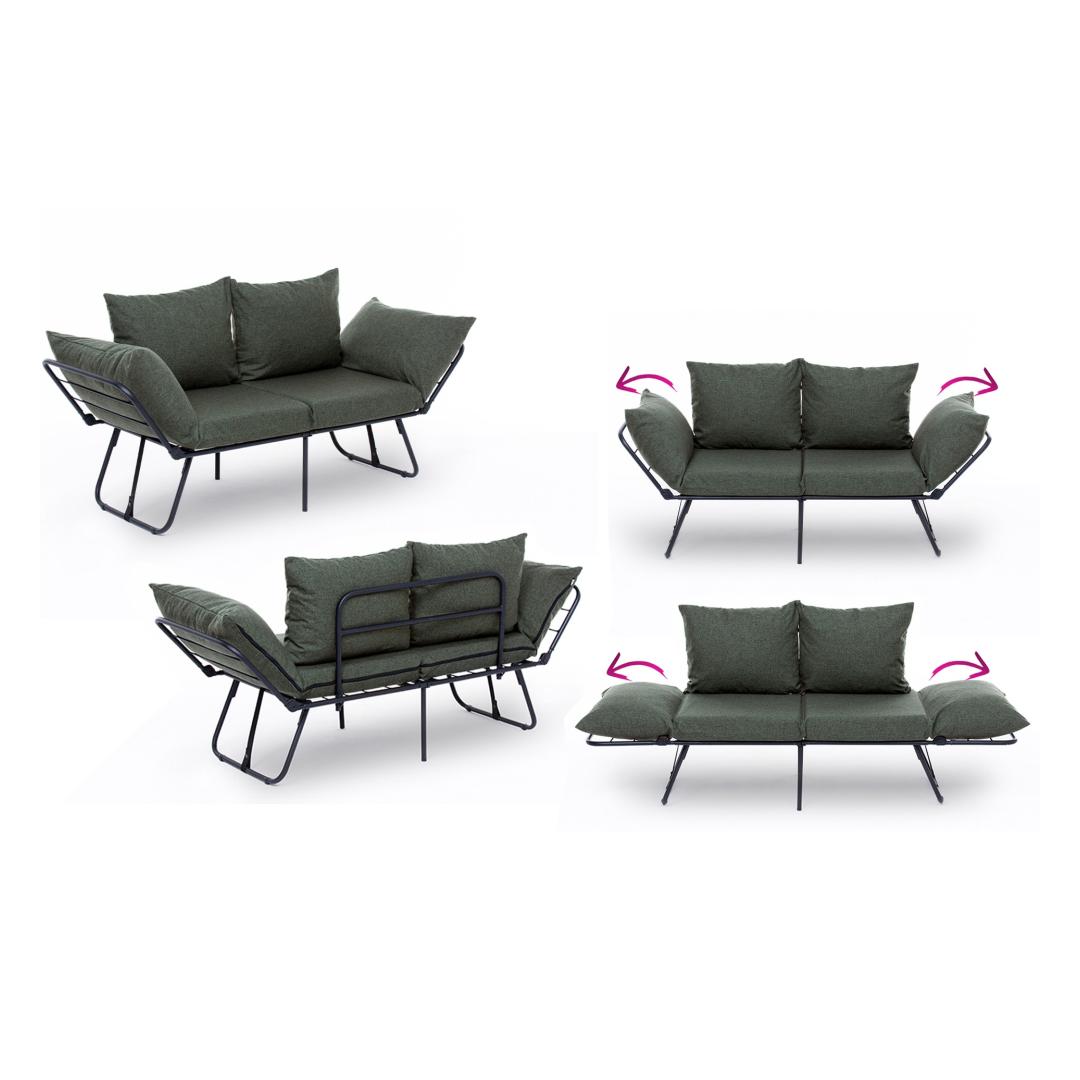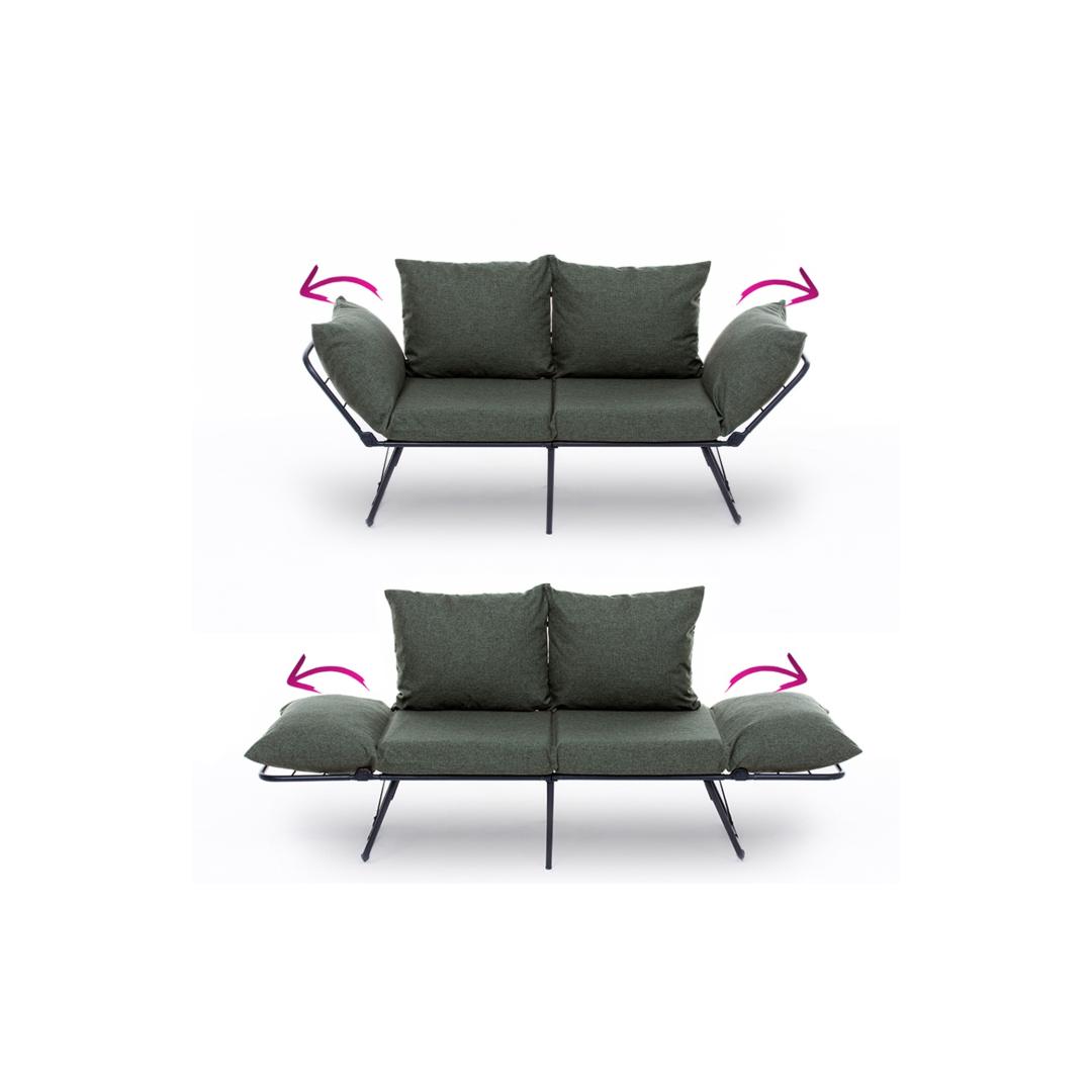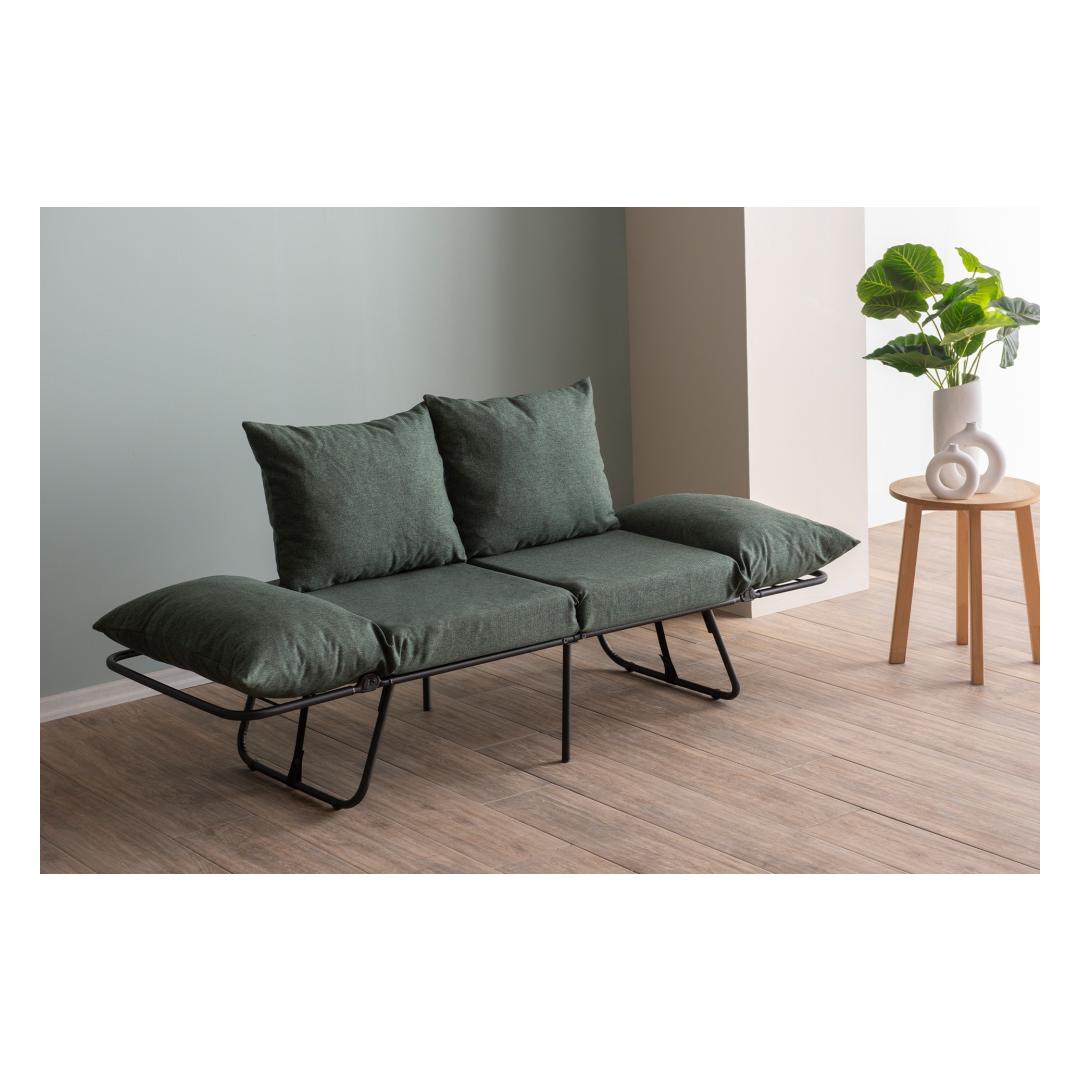 Constructed with a 100% metal frame, this sofa-bed is built to last. The sturdy frame ensures stability and durability for years to come. The green linen fabric adds a pop of color to your room, creating a warm and inviting atmosphere.