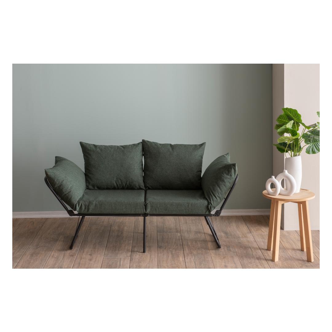 Transform your living space with our 2-Seat Sofa-Bed in stunning green linen fabric. This versatile piece is not just a sofa, but also a comfortable bed for your guests.