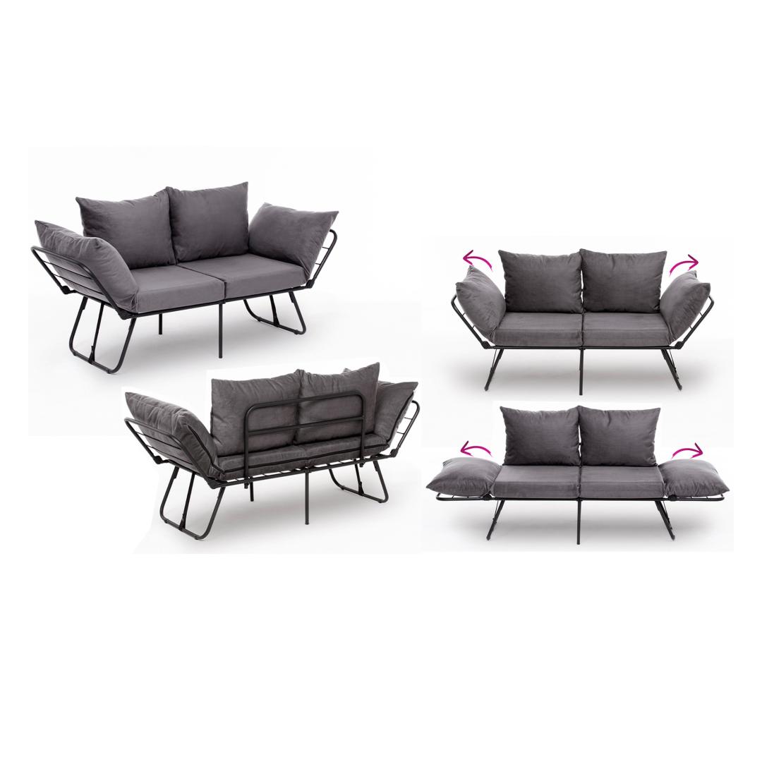 Crafted with a 100% metal frame and upholstered in soft polyester fabric, this sofa-bed offers the perfect blend of durability and comfort. The 24 DNS foam cushions provide a plush seating experience, while the 14-level adjustable arms allow you to customize your lounging experience.