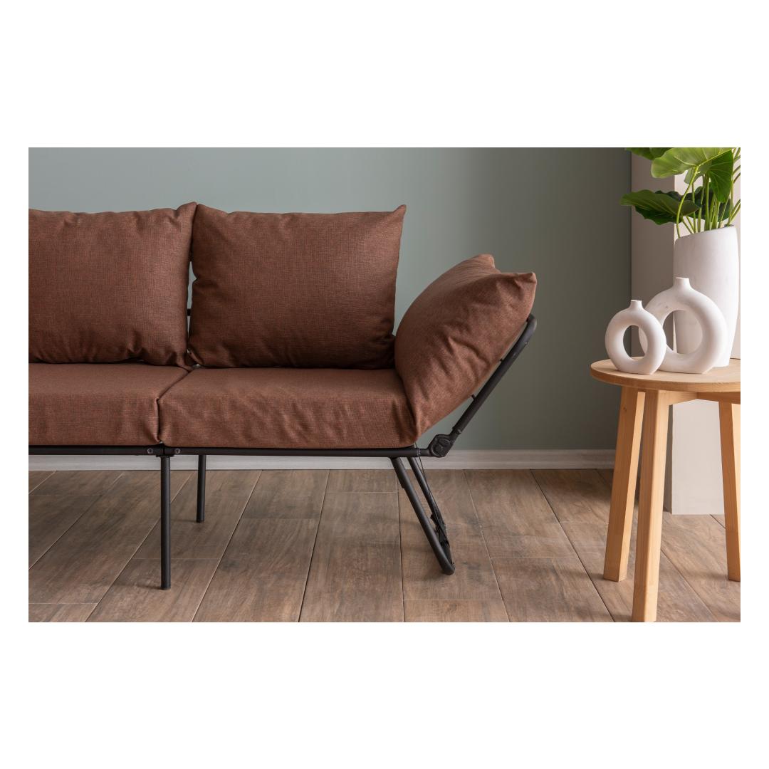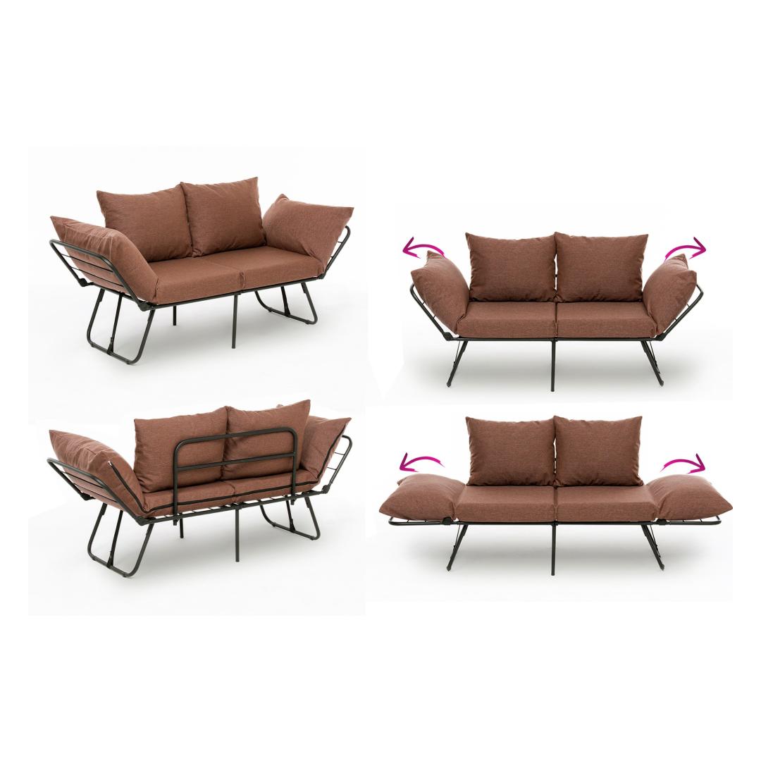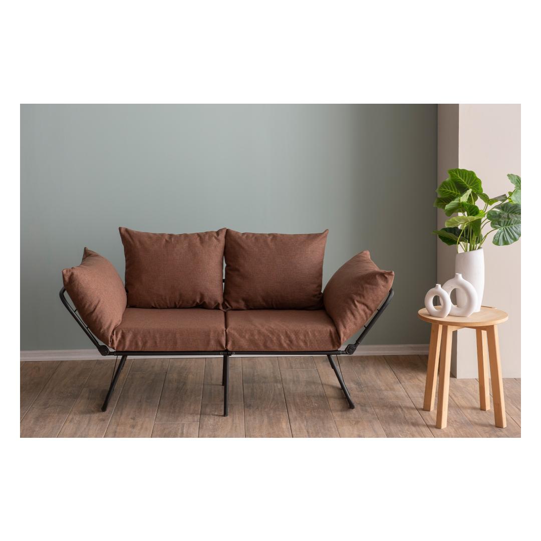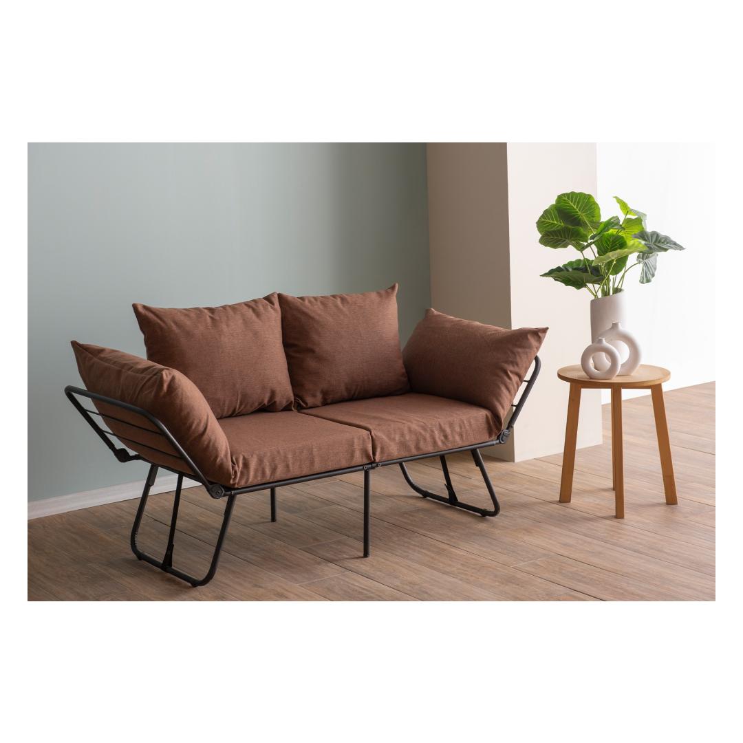 Transform your living space with our 2-Seat Sofa-Bed, a versatile piece that combines style and functionality seamlessly. Made with a sturdy 100% metal frame and soft linen fabric, this sofa-bed is designed to provide both comfort and durability.