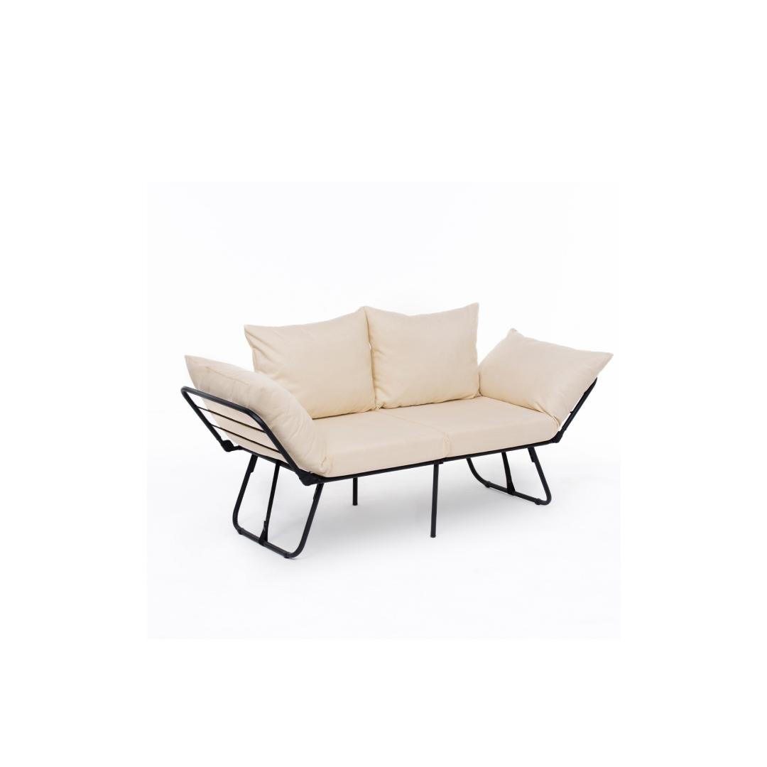 Crafted with a sturdy metal frame and plush polyester fabric, this sofa-bed offers both durability and comfort. The 24 DNS foam cushions provide the perfect balance of support and softness, making it ideal for lounging or sleeping. The light cream color adds a touch of elegance to any room, while the sleek metal legs give it a modern edge.