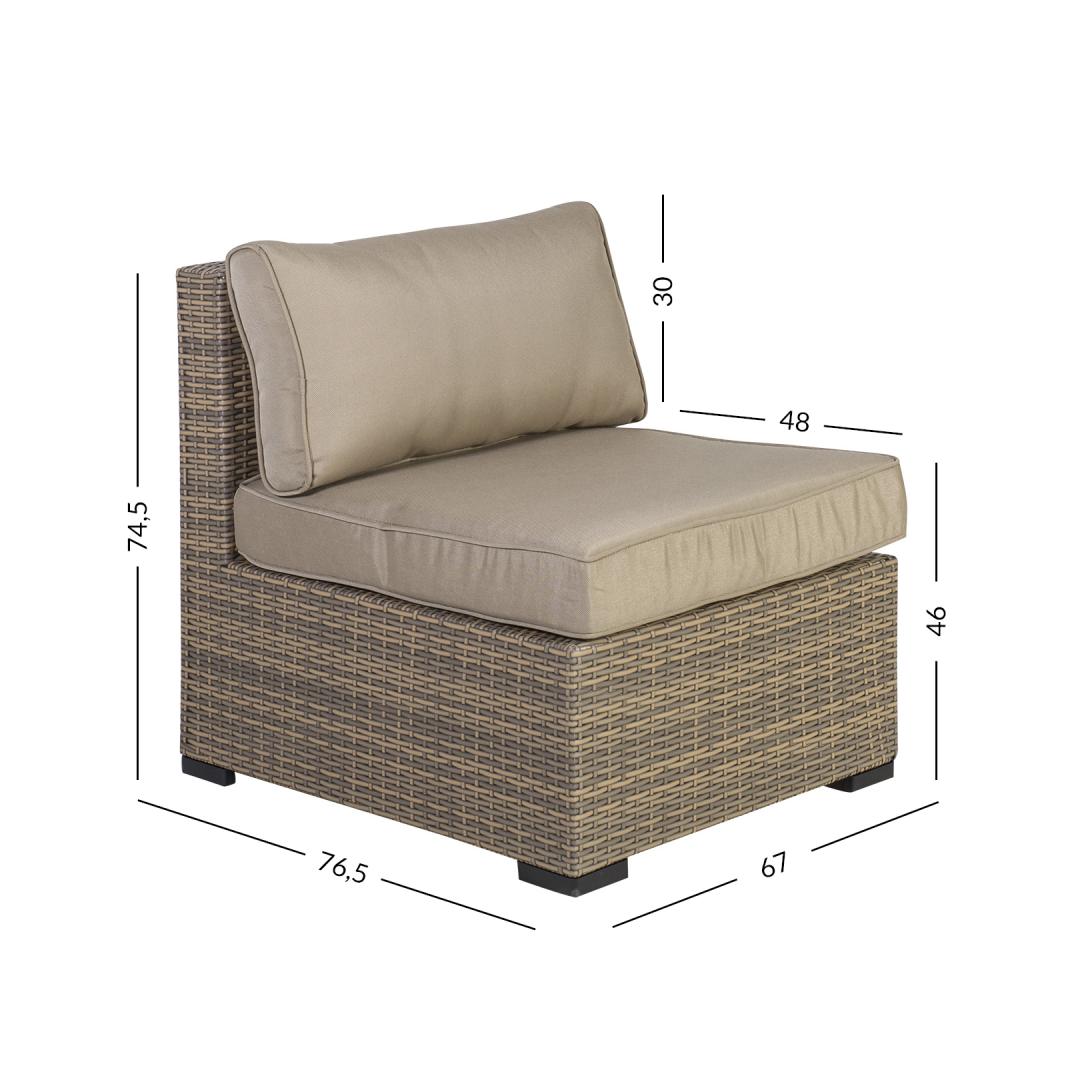 HOIUSTAMINE: suvehooaja lõppedes soovitame aiamööblit hoiustada siseruumides. Puhastage ja kuivatage mööbel enne hoiule panekut. Kasutage hoiustamiseks kuiva ning hea ventilatsiooniga ruumi. Diivani vahemoodul SEVILLA 67x76,5xH74,5cm, cappuccino.