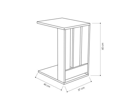 The dimensions of this side table are thoughtfully designed to fit seamlessly into any room. With a width of 37cm, height of 60cm, and depth of 45cm, it offers ample space for your essentials while maintaining a compact footprint.