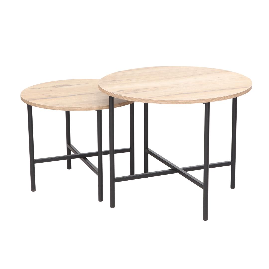 Jalat metallia ja viimeistelty mustalla pulverimaalilla. Sohvapöytä HANNES 60x60xK48cm, maalaismainen melamiini.