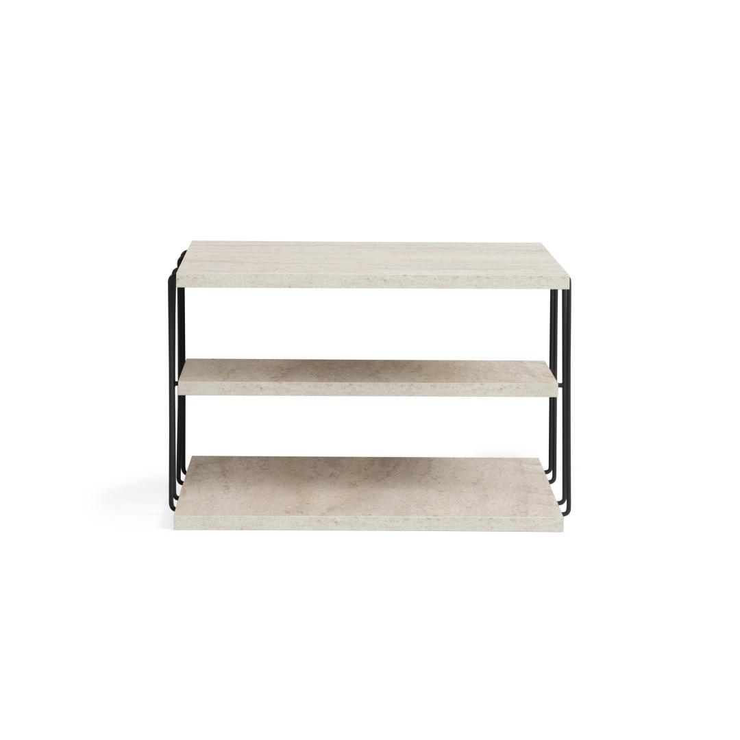 Elevate your living space with our stunning 2-Tier Side Table in Travertine and Black. This side table is not just a piece of furniture, it's a work of art that will add a touch of sophistication and elegance to any room. The marble concept design exudes luxury and style, making it the perfect addition to your home decor.