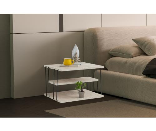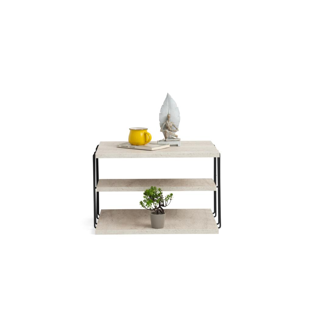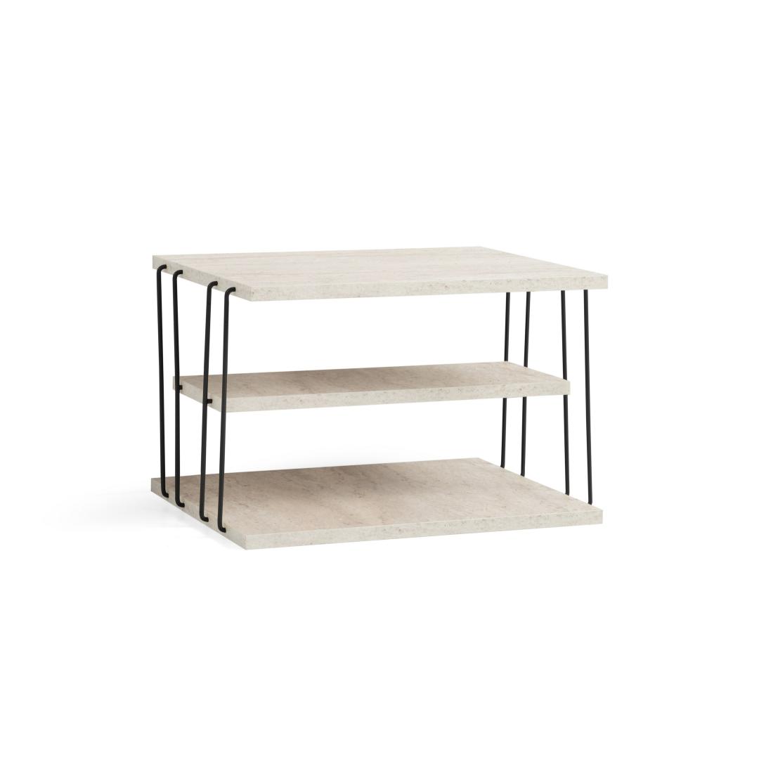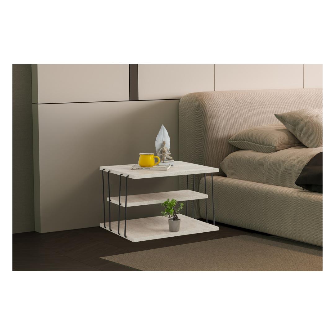 Crafted from 100% melamine coated particle board and a sturdy metal frame, this side table is built to last. The 18mm thickness ensures durability and stability, while the Travertine and Black color combination adds a touch of sophistication to any room. The 2-tier design provides ample storage space for your belongings, making it both stylish and functional.