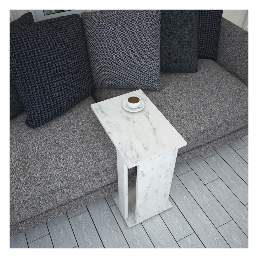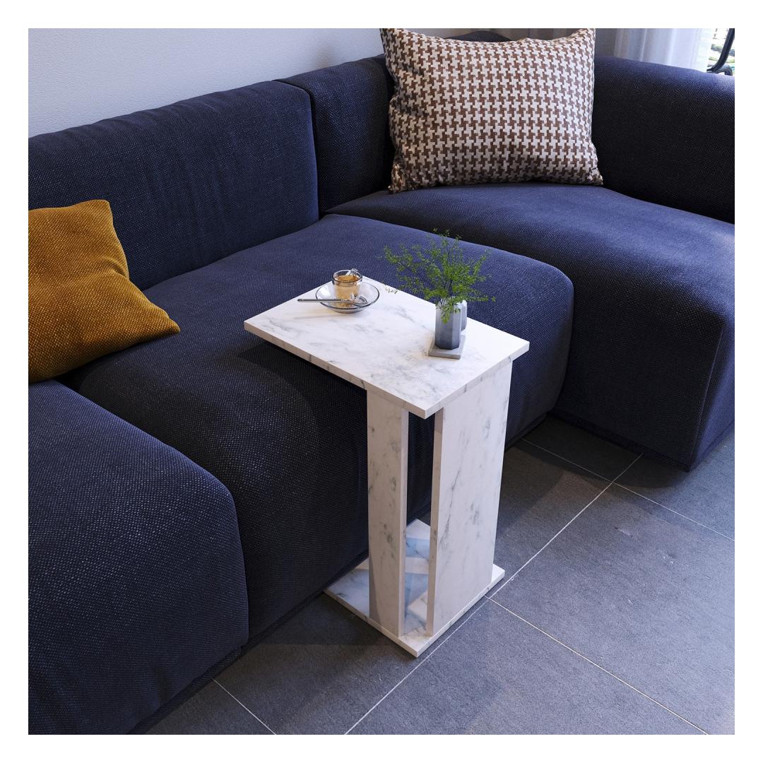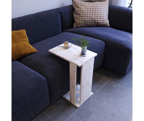 The contrasting colors of white and black create a striking visual impact, adding a touch of elegance to any room. The solid white surface exudes purity and tranquility, while the black accents bring a sense of sophistication and modernity. This combination makes our side table a versatile piece that seamlessly blends with any interior decor.