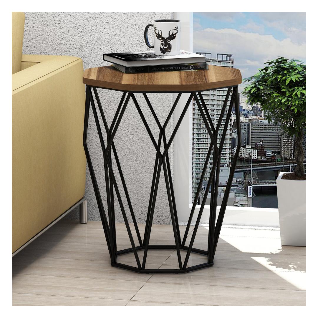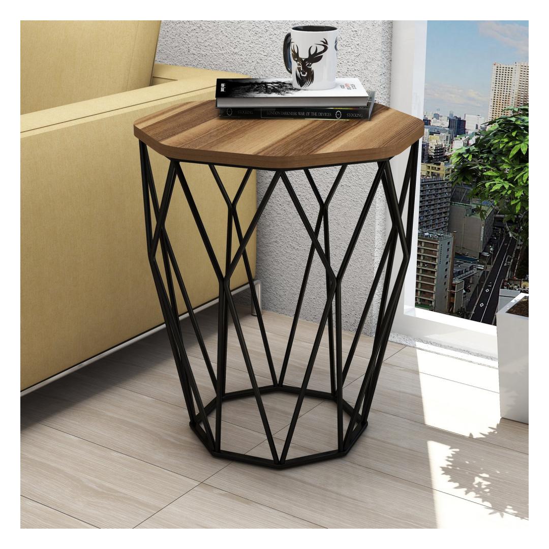 Introducing our stunning Modern-Industrial Side Table, a true masterpiece that will elevate the style of any space. With its sleek design and unique combination of Walnut and Black colors, this side table is a perfect blend of modernity and novelty.