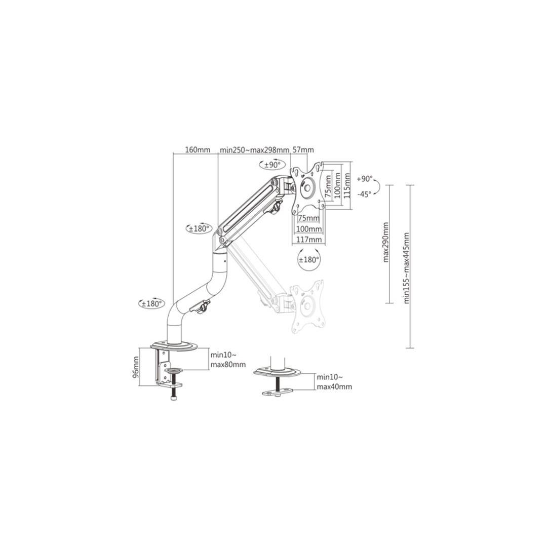 Säädettävä pöytänäytön asennusvarsi (kallistettava), 17"-32", enintään 8 kg Aseta näyttö täydellisesti paikalleen Kevyt ja kallistettava rakenne
