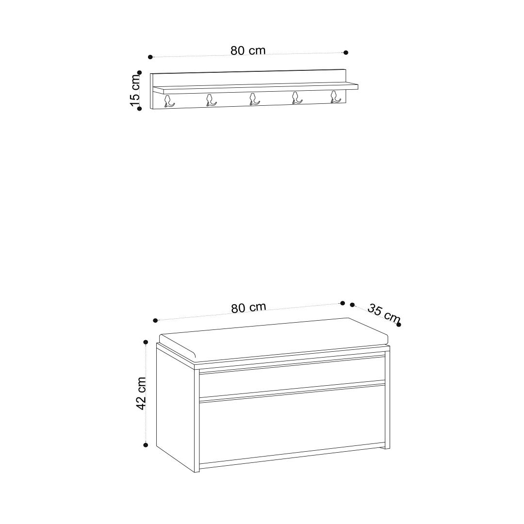 Width: 80 cm Height: 42 cm Depth: 35 cm