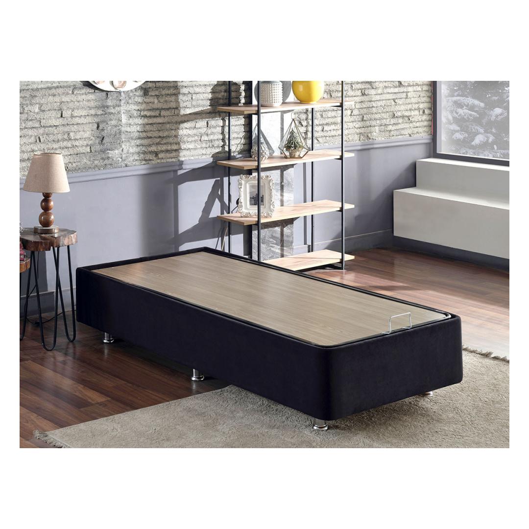 Koge võrratut mugavust ja stiili meie üheinimesevoodi alusegaMuutke oma magamistuba meie üheinimesevoodi alusega lõõgastumiseks ja luksuseks. See voodipõhi on valmistatud ülima täpsuse ja tähelepanuga detailidele ning see on loodud selleks, et pakkuda teile ülimat magamiskogemust. Lõbutsege võrratu mugavusesUppuge meie üheinimesevoodi aluse pehmesse mugavusse ja kogege lõõgastumist, mida te pole kunagi varem kogenud. 100% soho kanga polsterdus lisab teie magamistoale elegantsi ja rafineeritust, samas kui mdf-servad tagavad vastupidavuse ja pikaealisuse.Parandage oma magamistoa sisekujundustMeie üheinimesevoodi alus täiendab oma elegantse ja moodsa disainiga vaevata mis tahes magamistoa sisekujundust. Must värvus lisab elegantsust ja elegantsi, muutes selle ideaalseks täienduseks teie ruumile. Võrratu vastupidavus ja stabiilsusMeie üheinimesevoodi alus on valmistatud tugeva terasraamiga, mis tagab võrratu vastupidavuse ja stabiilsuse. 20 x 30 cm terasprofiil tagab pikaajalise toe, samas kui kuus jalga ja voodipõhja õhukapsel tagavad täiendava stabiilsuse ja mugavuse. Mugav hoiulahendusMeie üheinimesevoodi alusega on kaasas mugav kirst, mis pakub teie asjadele piisavalt hoiuruumi. Ütle hüvasti segastele magamistubadele ja tere puhtale ja korrastatud ruumile. Tehnilised üksikasjad:Raam: TerasestKangas: KANGAS: 100% SOHO KANGAS20 x 30 cm terasprofiilMDF servadLaius: 90 cm Kõrgus: 38 cm Sügavus: 190 cmVoodipõhja kõrgus: 28 cmJalgade kõrgus: 10 cmKuus jalgaVoodipõhi õhukapselTurvalukkKaasas kirstVärv: must Värv: Black