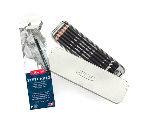 Piirustuskynät DERWENT Sketching 6kpl + teroitin metallikotelossa