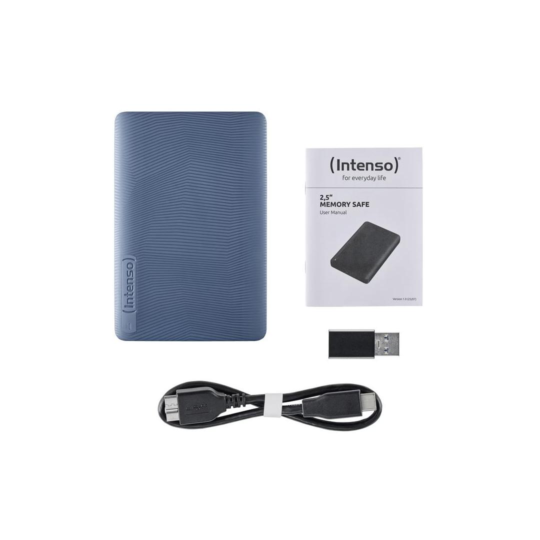 Intenso Memory Safe external hard drive 1 TB, blue. HDD capacity: 1 TB, HDD size: 2.5". USB version: 3.2 Gen 1 (3.1 Gen 1). HDD speed: 5400 RPM. Product colour: Blue
