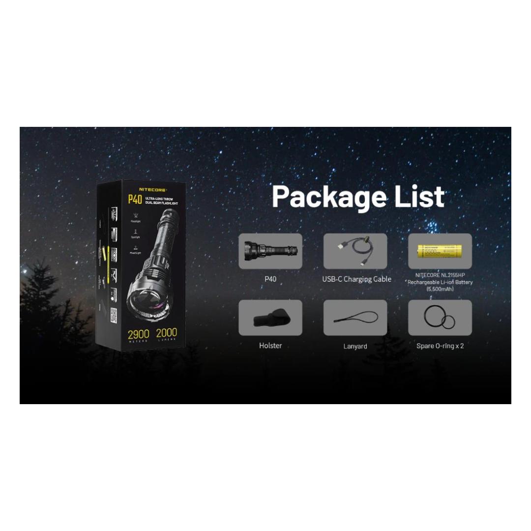 TASKULAMPPU LEP ERITTÄIN PITKÄ/2000 LUMENIA P40 NITECORE
