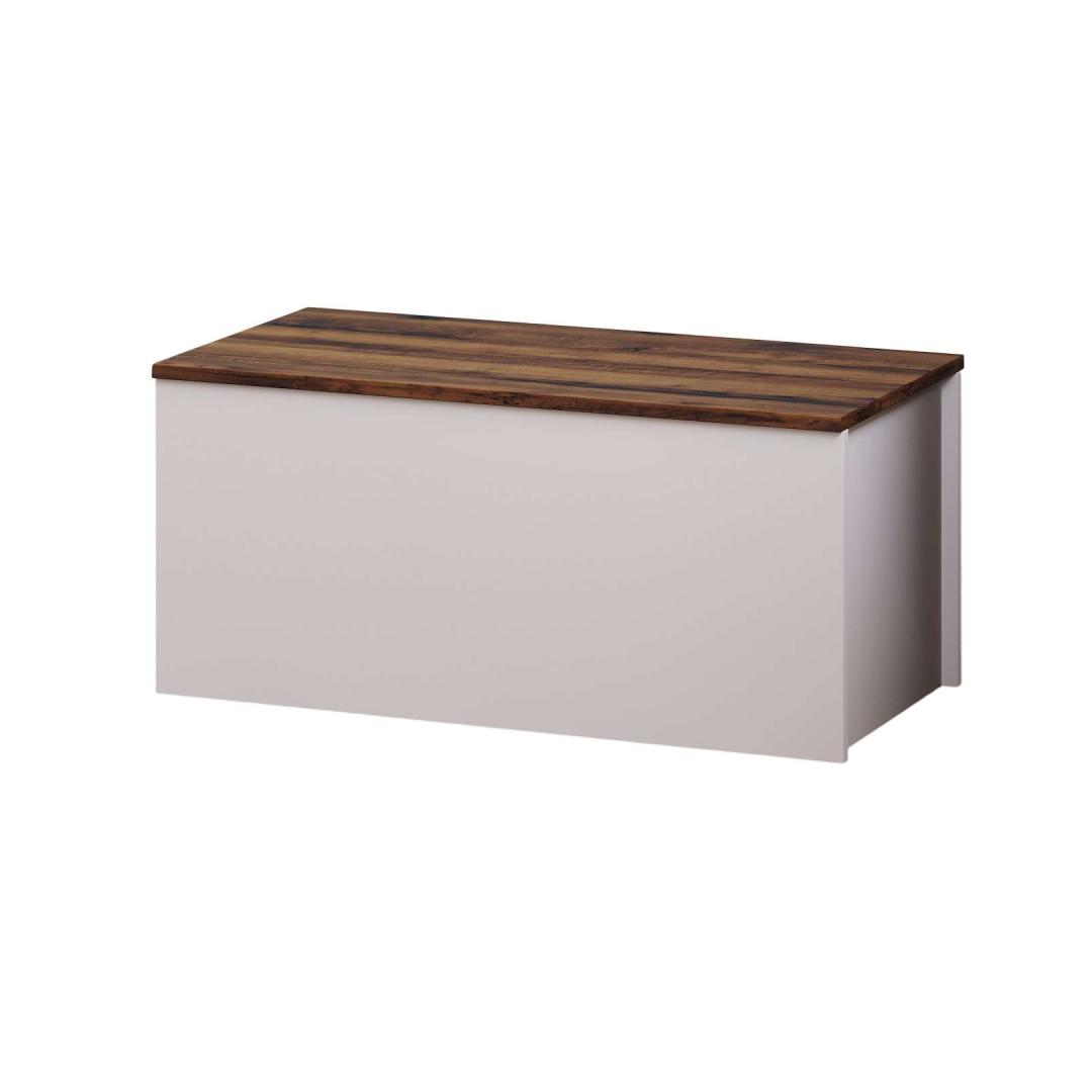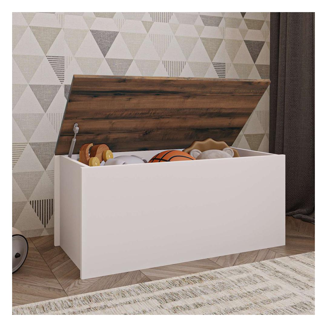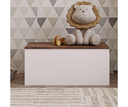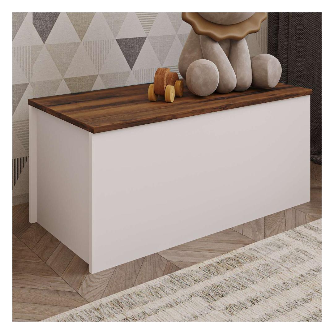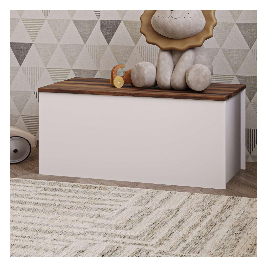 Muuda oma eluruum meie kauni kirstuga, mis on valmistatud 100% melamiiniga kaetud puitlaastplaadist, et tagada vastupidavus ja stiil. Sujuv disain ja elegantne valge ja pähklipuu värvikombinatsioon tõstavad kohe esile iga toa sinu kodus.Korralda stiilseltÜtle hüvasti segadusele ja tere korraldusele meie avara kirstuga. Laiusega 90 cm, kõrgusega 45,5 cm ja sügavusega 45 cm on piisavalt ruumi, et hoida oma asju korralikult ja puhtalt. Pehme sulgemise hinged tagavad iga kord sujuva ja vaikse toimimise.Tõsta oma sisustusLisa oma koju natuke rafineeritust meie kirstuga, millel on kaasaegne ja mitmekülgne disain. Valge ja pähklipuu värvid täiustavad igasugust olemasolevat sisustust, muutes selle hõlpsaks sinu ruumi integreerimiseks. Olgu see siis magamistoas, elutoas või koridoris, see kirst kindlasti tõmbab tähelepanu.Tehnilised andmed:Materjal: 100% melamiiniga kaetud puitlaastplaatPaksus: 18 mmLaius: 90 cmKõrgus: 45,5 cmSügavus: 45 cmPehme sulgemise hinged sujuvaks toimimiseksVärv: Valge ja pähklipuu Värv: White Walnut