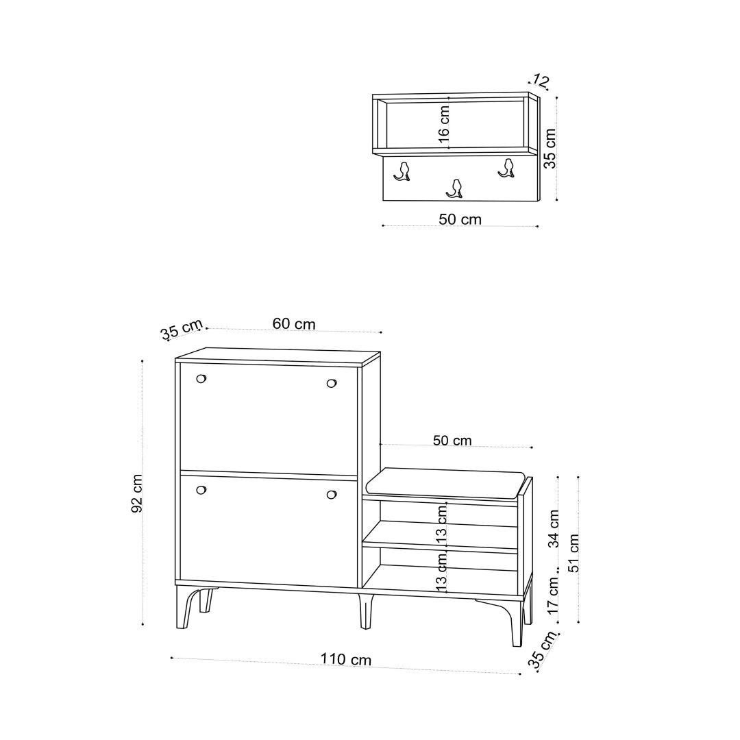 Organiseeri oma kingad stiilselt meie kingakapigaKas olete väsinud sellest, et teie kingad segavad teie esikut või magamistuba? kas soovite, et teil oleks stiilne ja praktiline lahendus, et hoida oma jalanõud korralikult organiseeritud? ei vaata kaugemale kui meie kingakapp!Elegantne disain, mis kaunistab teie ruumiMeie kingakapp ei ole lihtsalt hoiulahendus, vaid mööbliese, mis suurendab teie kodu esteetilist atraktiivsust. Tänu oma elegantsele ja modernsele disainile sulandub see sujuvalt mis tahes sisustusstiiliga, lisades teie ruumile elegantsi. Valge ja musta värvi kombinatsioon annab sellele kaasaegse välimuse, mis avaldab kindlasti muljet.Rikkalik panipaik kõigile teie kingadeleÜtle hüvasti kingahunnikutele ja tere korraldatud õndsusele! meie kingakapp pakub piisavalt hoiuruumi, et mahutada kõik sinu jalatsid. Tänu mitmetele riiulitele ja lahtritele saate oma kingad kenasti paigutada, hoides need kergesti ligipääsetavana ja tolmuvabana. Enam ei pea otsima sobivaid paare ega komistama laiali pillutatud kingade üle!Kindlad ja kauakestvadMe mõistame, kui oluline on investeerida kvaliteetsesse mööblisse, mis peab vastu. Seepärast on meie kingakapp valmistatud 100% melamiiniga kaetud puitlaastplaadist, mis tagab vastupidavuse ja pikaealisuse. 18 mm paksus lisab tugevust, mistõttu on see võimeline vastu pidama igapäevasele kasutamisele ja pakub teile usaldusväärset hoiulahendust aastateks. Tehnilised üksikasjad:Materjal: materjal: 100% melamiiniga kaetud puitlaastplaatPaksus: 18 mmLaius: 110 cmKõrgus: 92 cmSügavus: 35 cmVärv: valge ja mustÄrge laske oma kingadel tekitada kodus kaost. Tellige meie kingakapp juba täna ja kogege rõõmu segadusteta ja stiilsest eluruumist. Värv: White Black