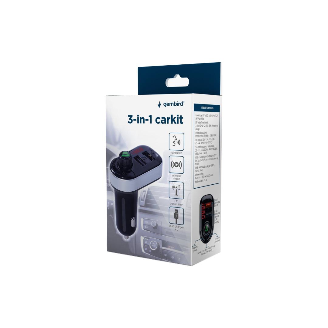 GEMBIRD 3-in-1 Carkit with FM-radio transmitter and USB charger black GEMBIRD 3-in-1 Carkit with FM-radio transmitter and USB charger black