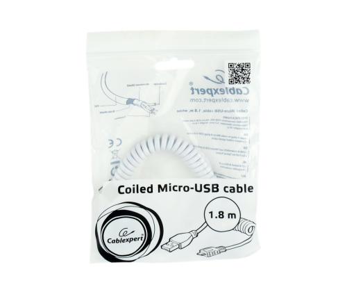 GEMBIRD CC-mUSB2C-AMBM-6-W Gembird Coiled Micro-USB cable, 1.8m, white GEMBIRD CC-mUSB2C-AMBM-6-W Gembird Coiled Micro-USB cable, 1.8m, white
