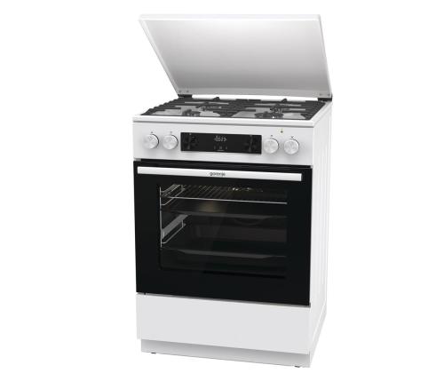 Gorenje, 71 L, leveys 60 cm, valkoinen - Kaasuliesi, jossa on sähköuuni