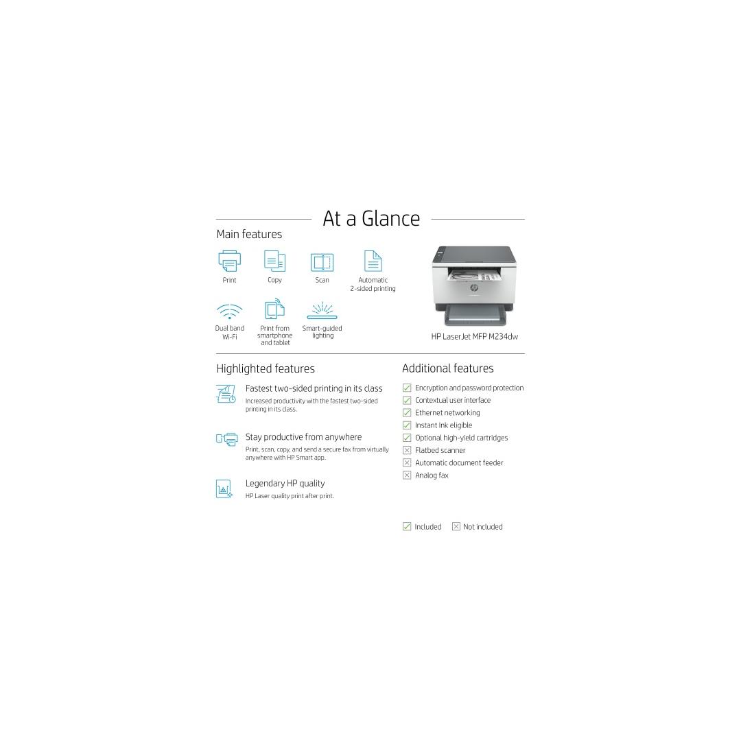 HP LaserJet MFP M234dw Tulostin Laser S/W A4 29 sivua/min Wi-Fi USB Bluetooth Ethernet LAN