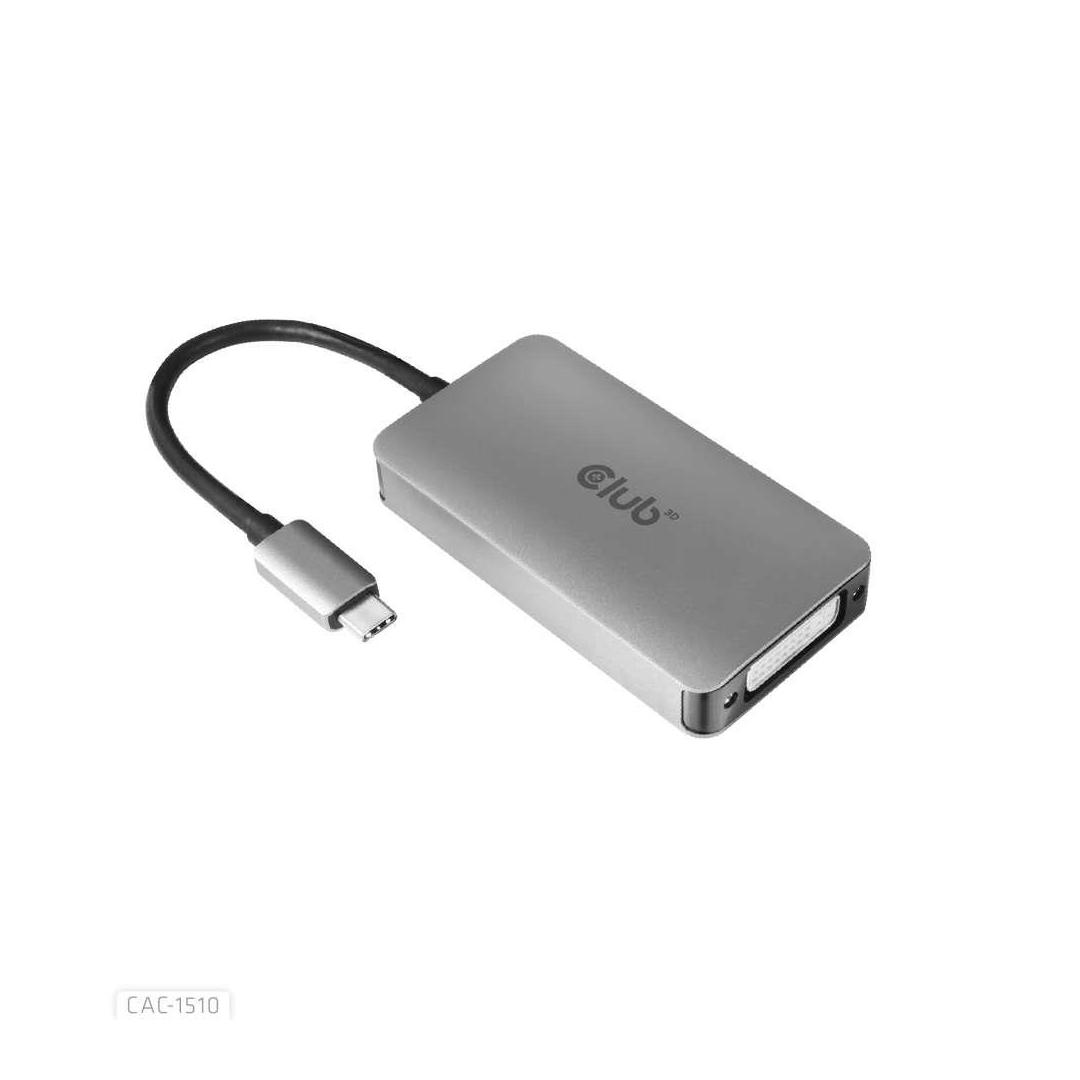 Club 3D CAC-1510 on USB Type C -tulosta Dual Link DVI-D tai Single Link DVI -lähtösovitin HDCP ON -versio näytöille, jotka tukevat HDCP:tä.