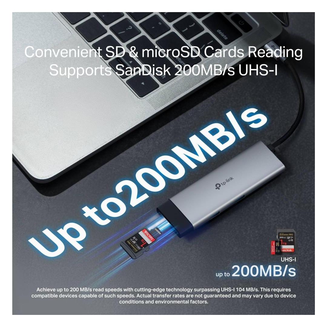 SD & microSD UHS-I: Siirrä helposti tietoja SD- ja microSD-kortteihin (jopa 200 MB/s). Koe saumaton tiedonhallinta samanaikaisilla luku- ja kirjoitusominaisuuksilla sekä microSD- että SD-kortteihin.