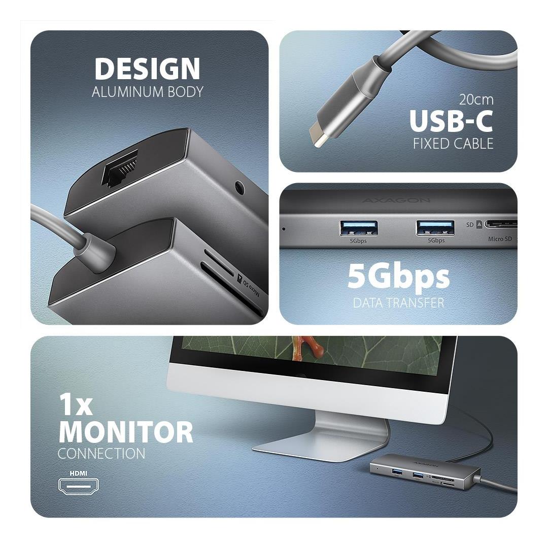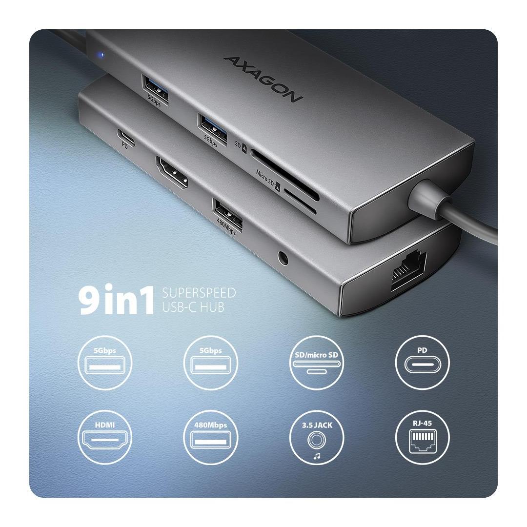 I/O HUB USB-C 9IN1 5GBPS/0.2M HMC-8HLSA AXAGON