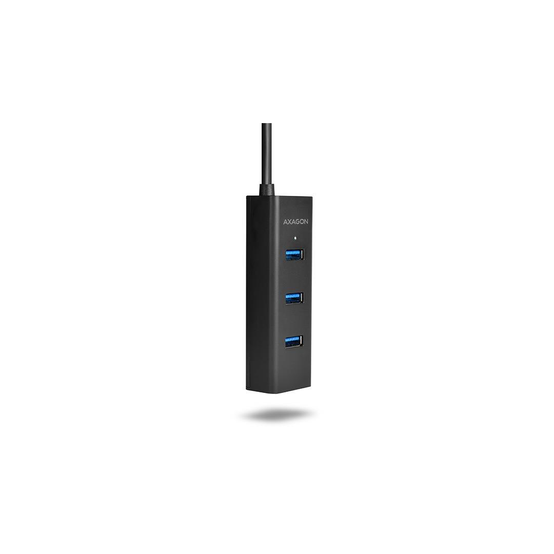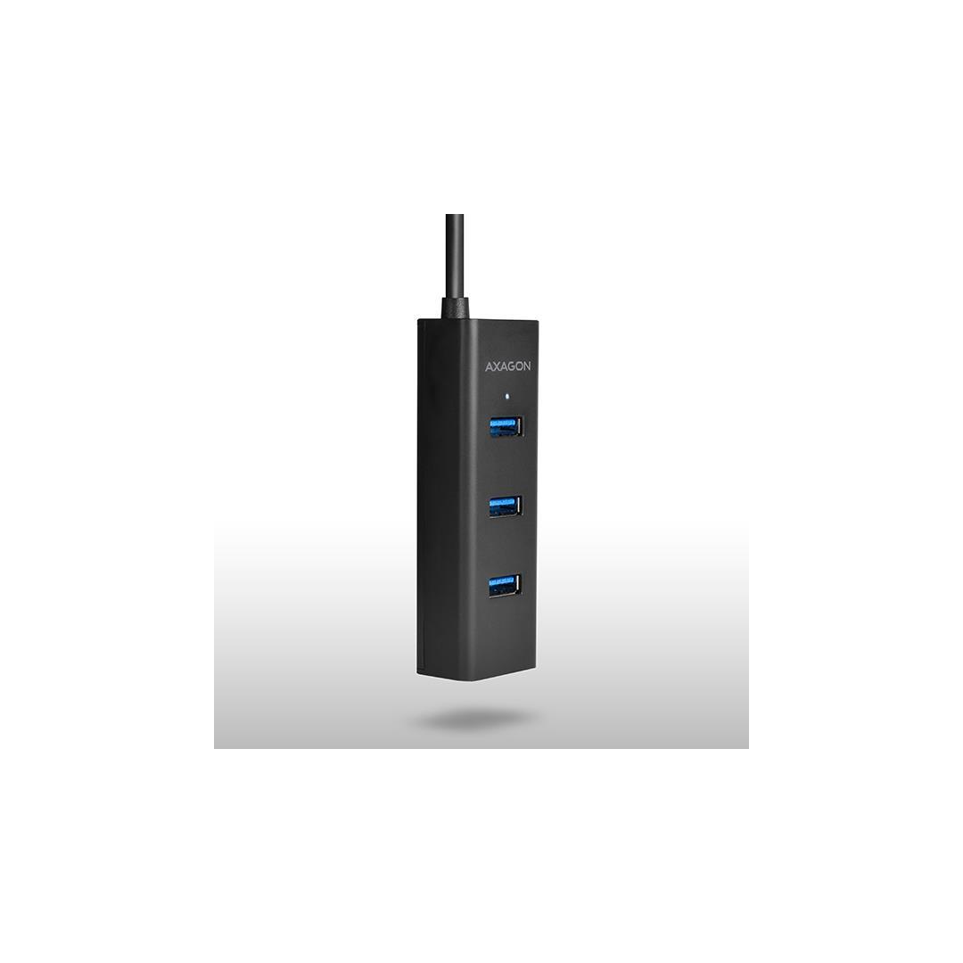 - LED-ilmaisin keskittimen yhteyden p Neljäporttinen AXAGON HUE-S2B USB 3.0 -keskitin, jossa on lisävarusteena ulkoinen virtalähde ja pikalataustuki kaikissa porteissa.