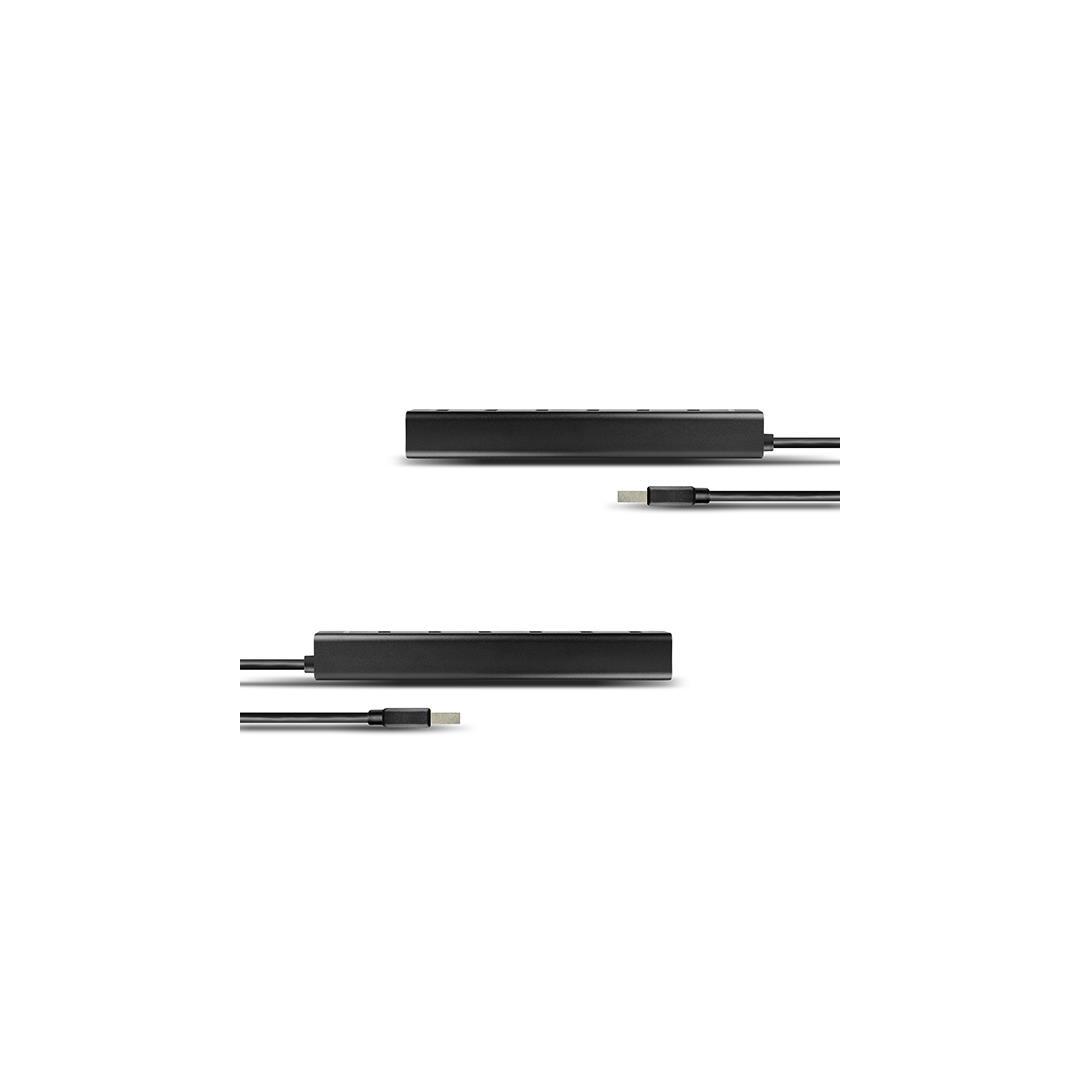 Keskittimen rungon eri puolilla riittävin välein sijaitsevat USB-portit takaavat suurten USB-laitteiden saumattoman suoran liittämisen.