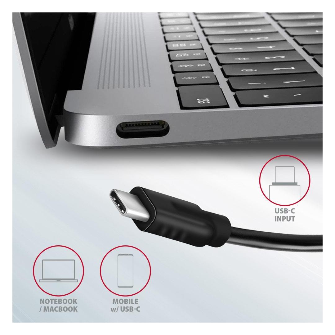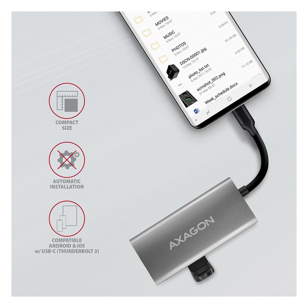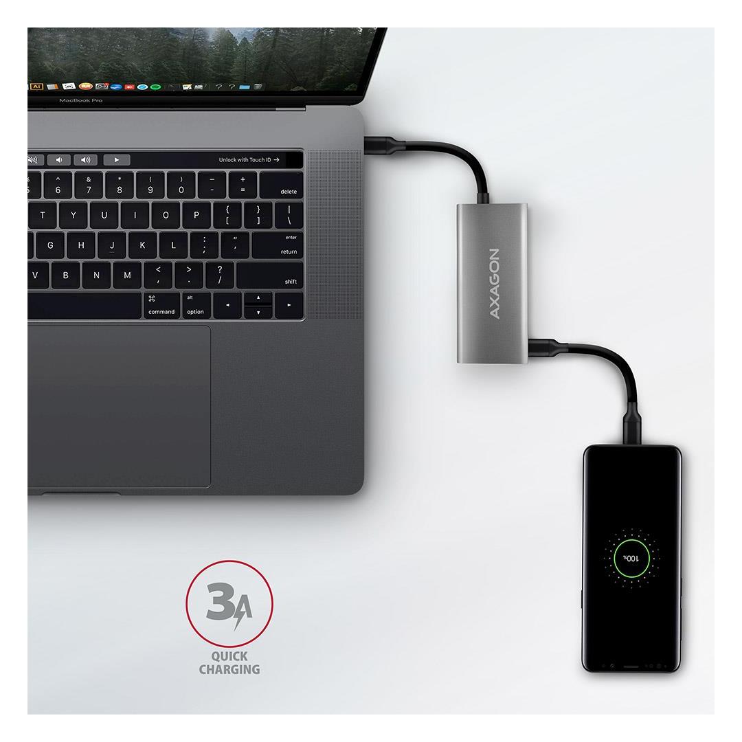 Supernopea USB-C 3.2 Gen 2 -keskitin AXAGON HMC-4G2 SPEEDSTER 4 laajentaa kannettavaa tietokonettasi, tietokonettasi tai puhelintasi neljällä portilla. Voit helposti ja nopeasti liittää jopa neljä USB-laitetta tietokoneeseen samanaikaisesti kaksipuolisen USB-C-liittimen kautta.