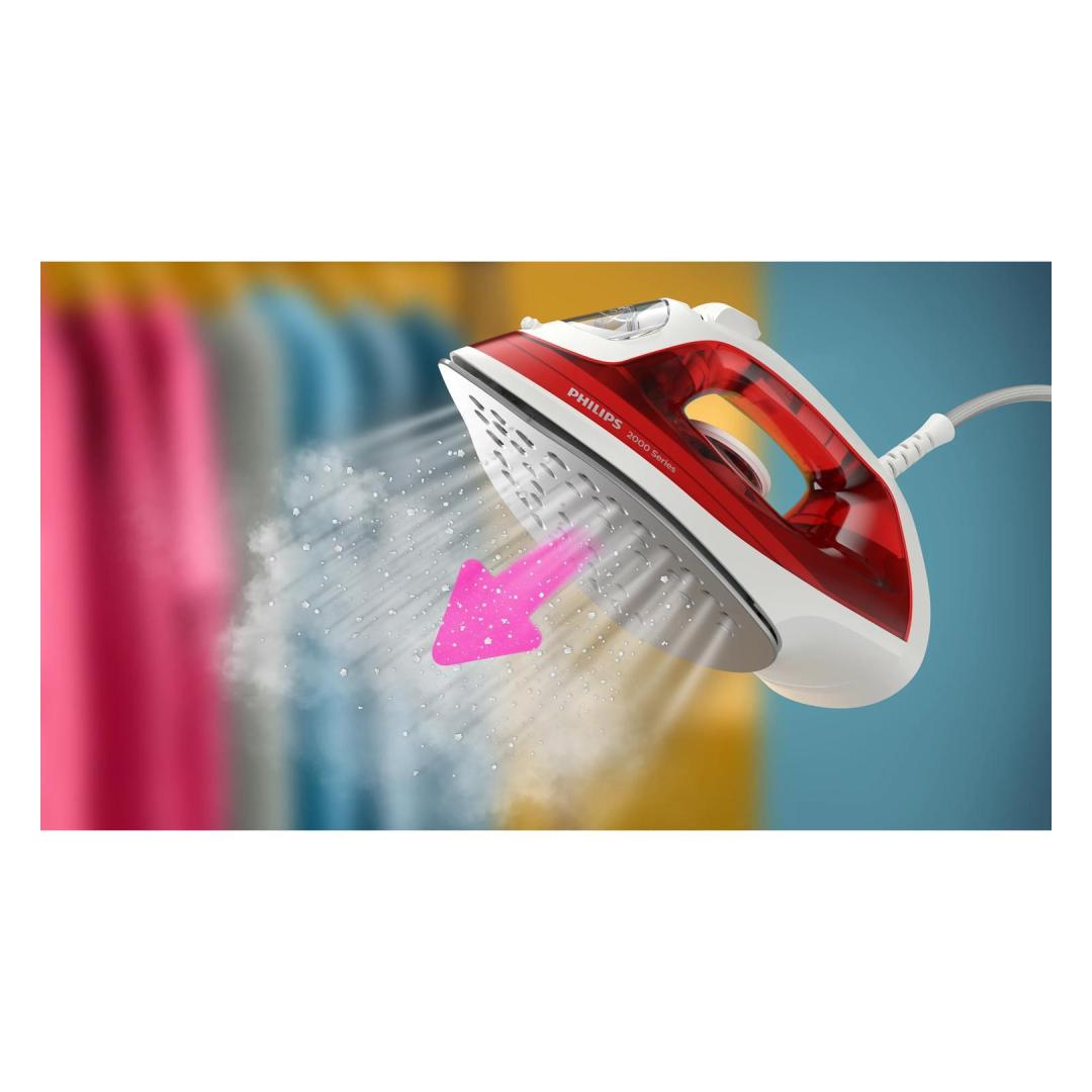 Philips 2000 series DST2010/40. Type: Steam iron, Soleplate type: Non-stick soleplate, Cord length: 1.9 m. Iron power: 2000 W. Weight: 950 g. Warranty period: 2 year(s)