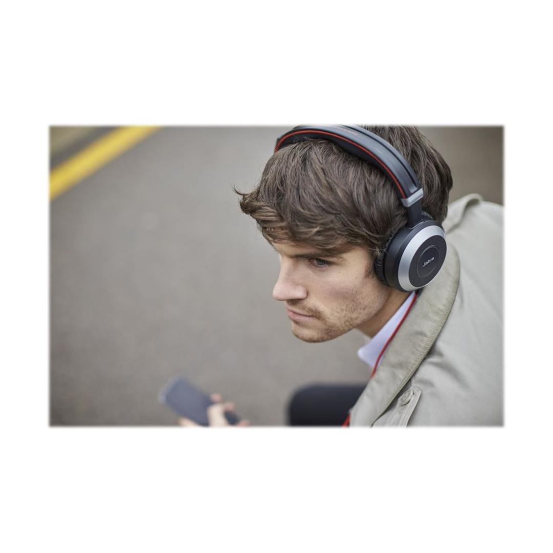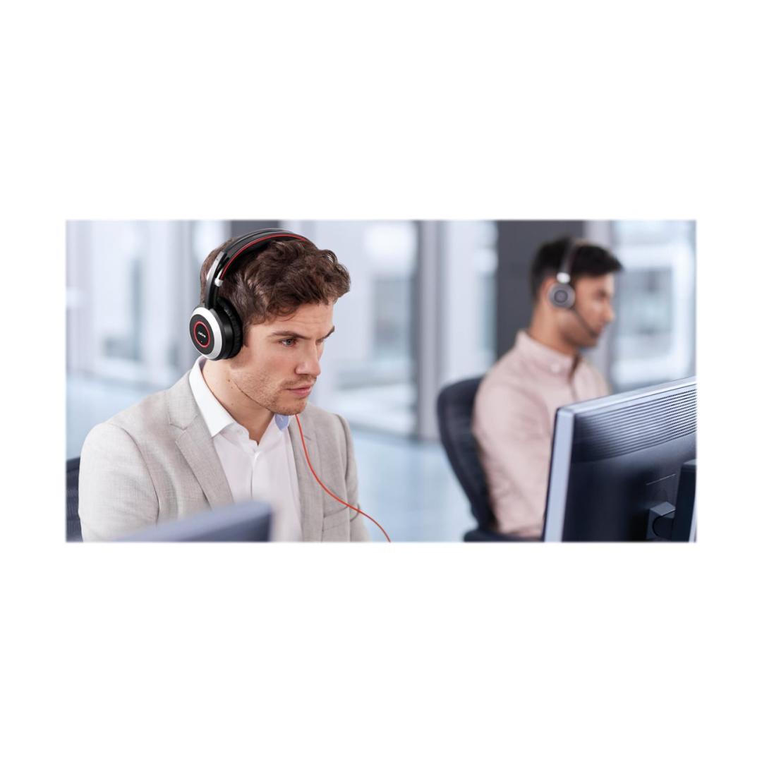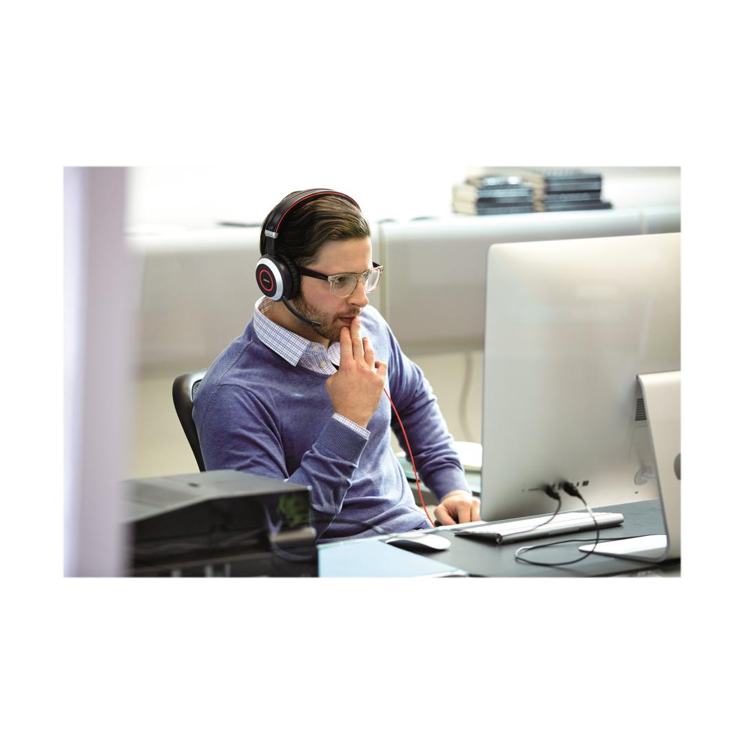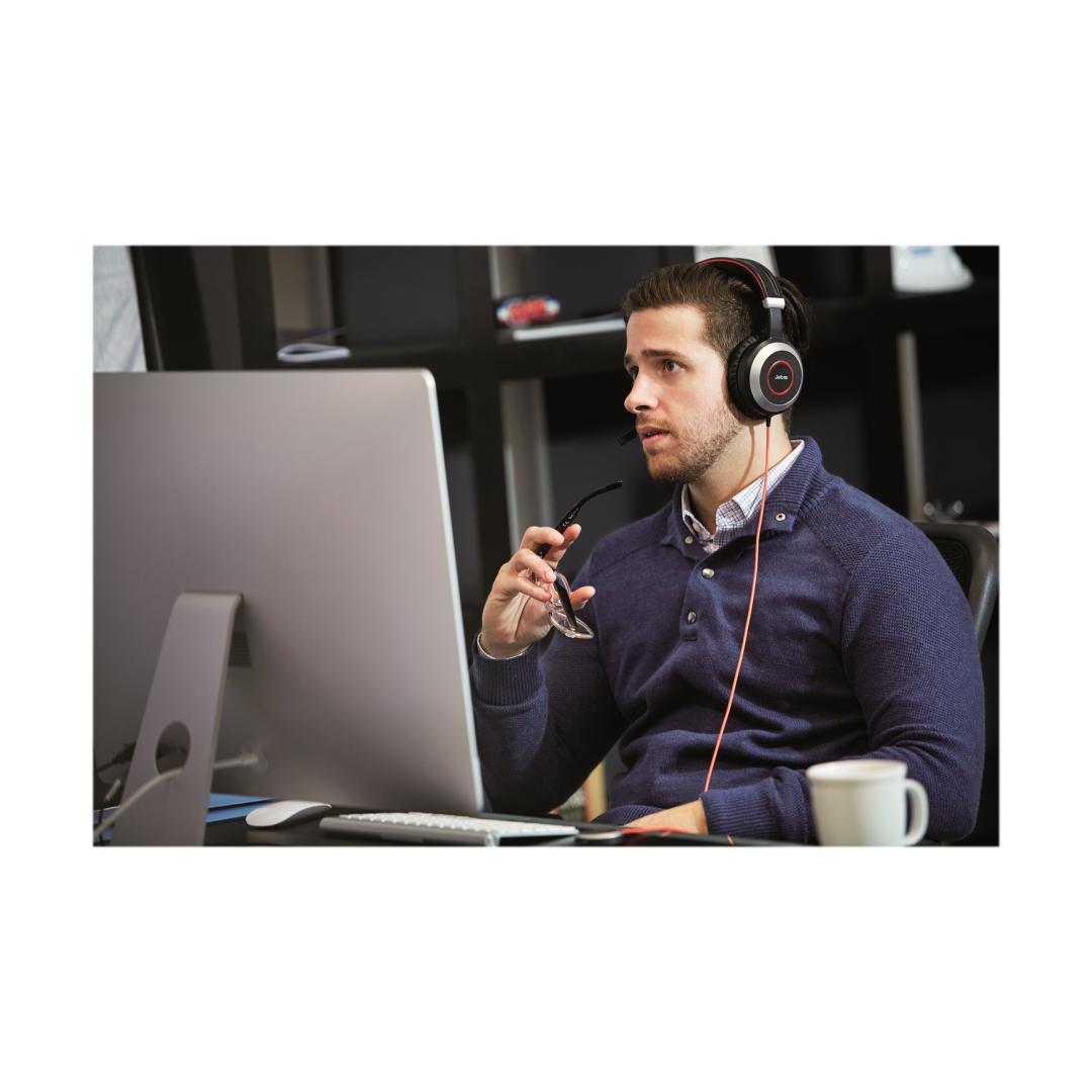 JABRA EVOLVE 80 MS Stereo USB-kuulokepanta Aktiivinen melua vaimentava USB-liitin, jossa on mykistyspainike ja äänenvoimakkuuden säätö johdossa JABRA EVOLVE 80 MS Stereo USB-kuulokepanta Aktiivinen melua vaimentava USB-liitin, jossa on mykistyspainike ja äänenvoimakkuuden säätö johdossa