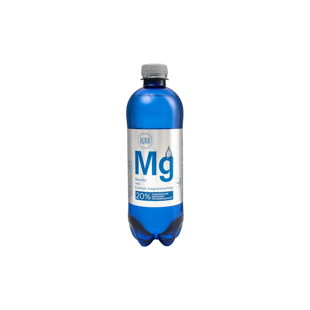 Aura still water with added magnesium Pure water from a depth of 410m in the Estonian aquifer has been supplemented with magnesium, which helps reduce fatigue and exhaustion, contributes to normal muscle function and helps maintain normal bones. The still water is packaged in a handy 0.5-liter bottle, which is convenient to take with you when you go to the gym. One bottle of water provides 20% of the daily magnesium requirement. Magnesium helps reduce fatigue and exhaustion, contributes to normal muscle function and helps maintain normal bones. Aura – beloved Estonian water.