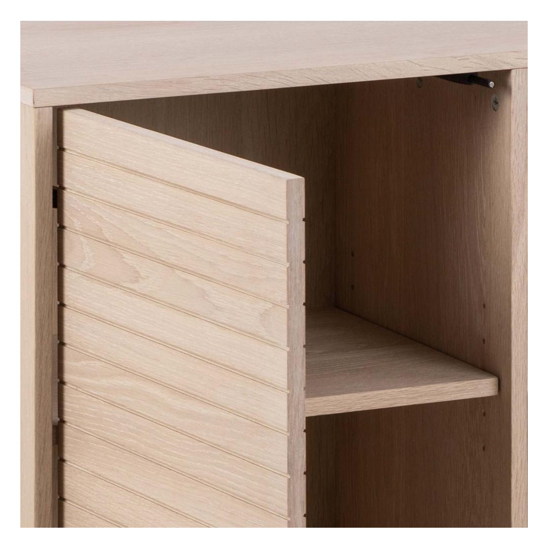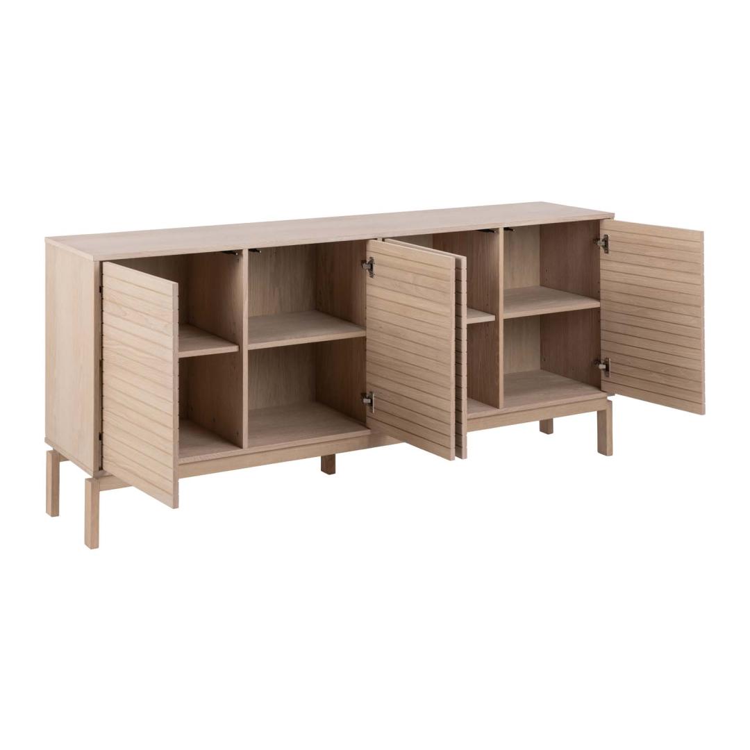 Offering both storage and harmonious design. The sideboard is perfect for both modern and traditional spaces. There are four adjustable shelves behind the doors. The dimensions are 180x40xH80cm. CARE: Any spills must be instantly removed with a moist cloth. Use a cloth firmly wrung in mild soapy water and make sure to wipe dry along the grains of the wood.
