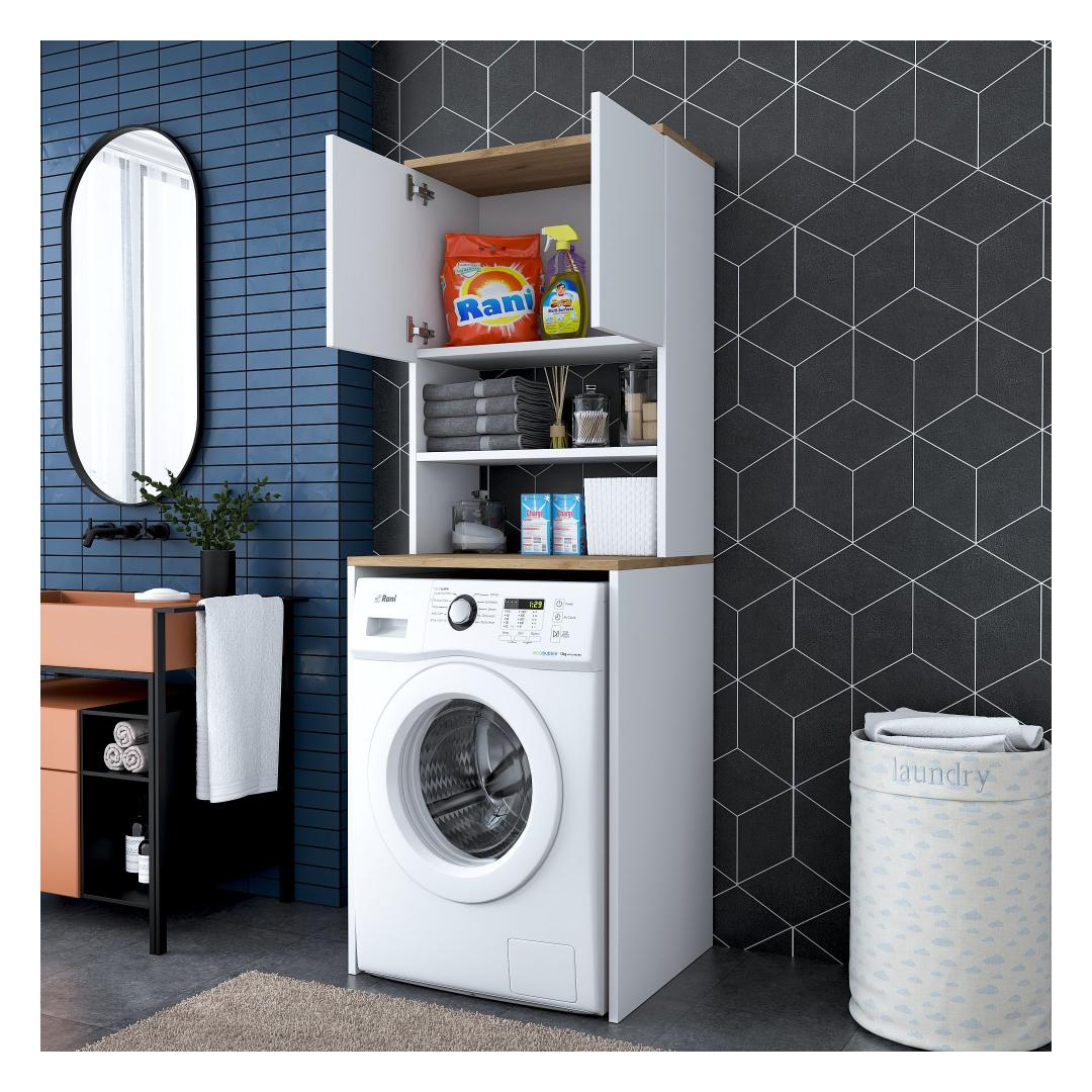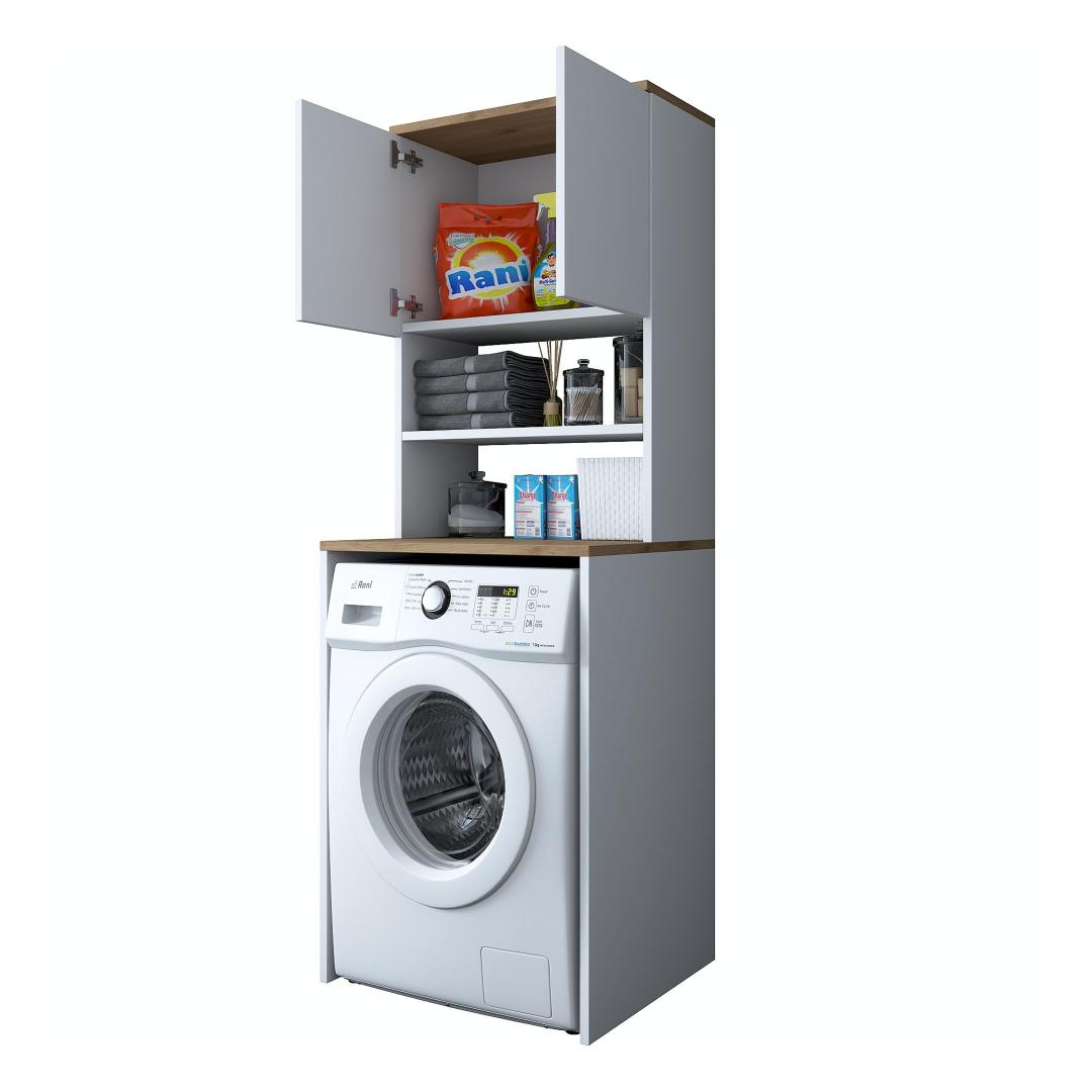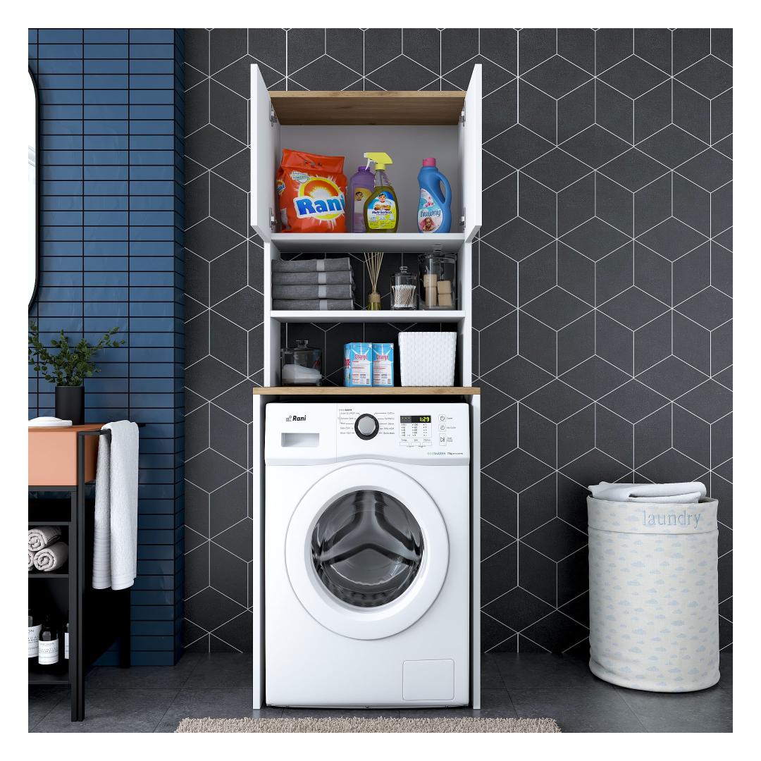 Muunna pesutilasi tyylikkäällä ja toiminnallisella pyykkikaapillaParanna pesutilasi hienolla pyykkikaapilla. Tämä 100-prosenttisesti melamiinipinnoitetusta lastulevystä valmistettu kaappi ei ole ainoastaan kestävä, vaan se myös lisää tilasi tyylikkyyttä. Luo sotkusta vapaa tila runsaalla säilytystilallaRunsas hyllystö ja ylimääräinen kirjahylly, kaappimme tarjoaa runsaasti säilytystilaa kaikille pesutarvikkeillesi. Sano hyvästit sotkuisille työtasoille ja hei hyvin järjestetylle pyykkituvalle.Täydennä kodin sisustusta modernilla ja uudenlaisella muotoilullaKirkkaan värinen ja moderni muotoilu, pyykkikaappi sulautuu vaivattomasti mihin tahansa kodin sisustukseen. Valkoisen ja pähkinäpuun väriyhdistelmä tuo tilaan hienostuneisuutta, mikä tekee siitä pesutilasi keskipisteen. Rakennettu kestävyyttä ja lujuutta vartenTämä kaappi on valmistettu 18 mm paksusta melamiinipinnoitetusta lastulevystä kestävyyden ja lujuuden takaamiseksi. Se kestää helposti pesukoneesi ja muiden tavaroiden painon ja tarjoaa sinulle luotettavan säilytysratkaisun vuosiksi eteenpäin. Tekniset tiedot:Materiaali:Materiaali:100% melamiinipinnoitettu lastulevyPaksuus:18mmLeveys:65cm,Korkeus:183.6cm,Syvyys:60cmTilan hyllykoko:Leveys:65cm,Korkeus:91.8cm,Syvyys:30cmVoidaan kiinnittää seinään lisää vakautta ja turvallisuuttaVärjennä pyykkihuoneesi jo tänään pyykkikaapillamme ja nauti sotkusta vapaasta ja tyylikkäästä tilasta. Tilaa nyt ja koe toiminnallisuuden ja tyylikkyyden täydellinen yhdistelmä. Väri: Valkoinen pähkinä