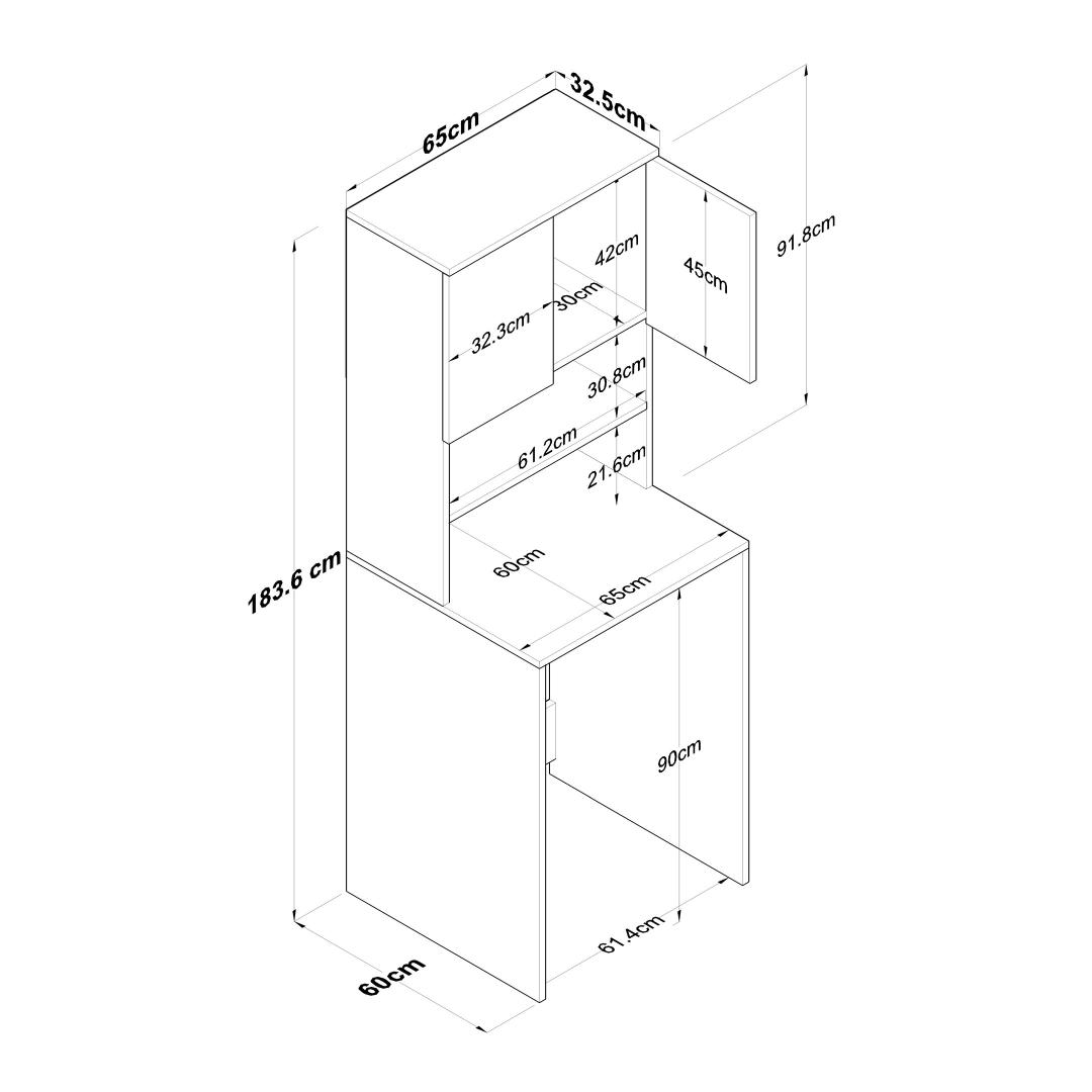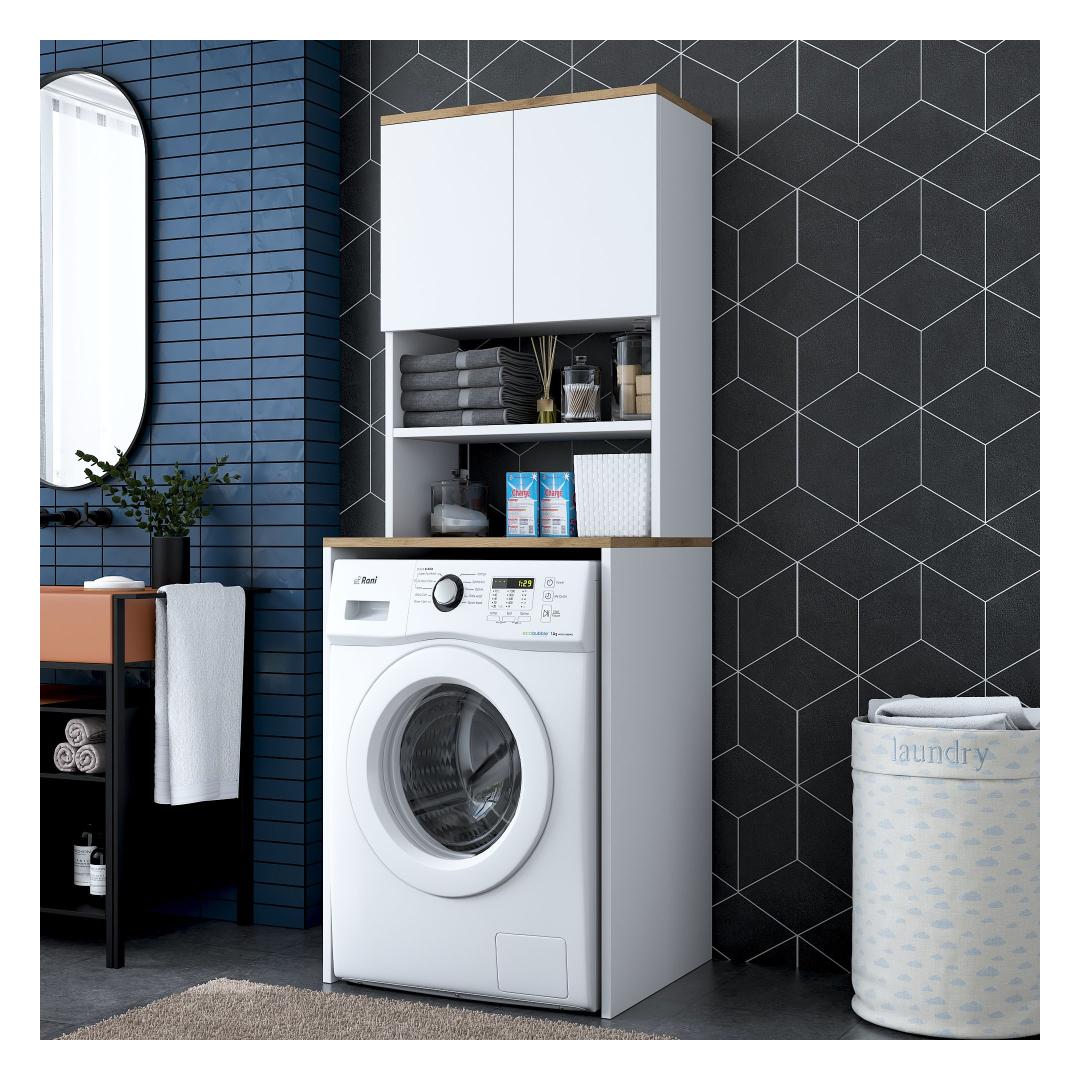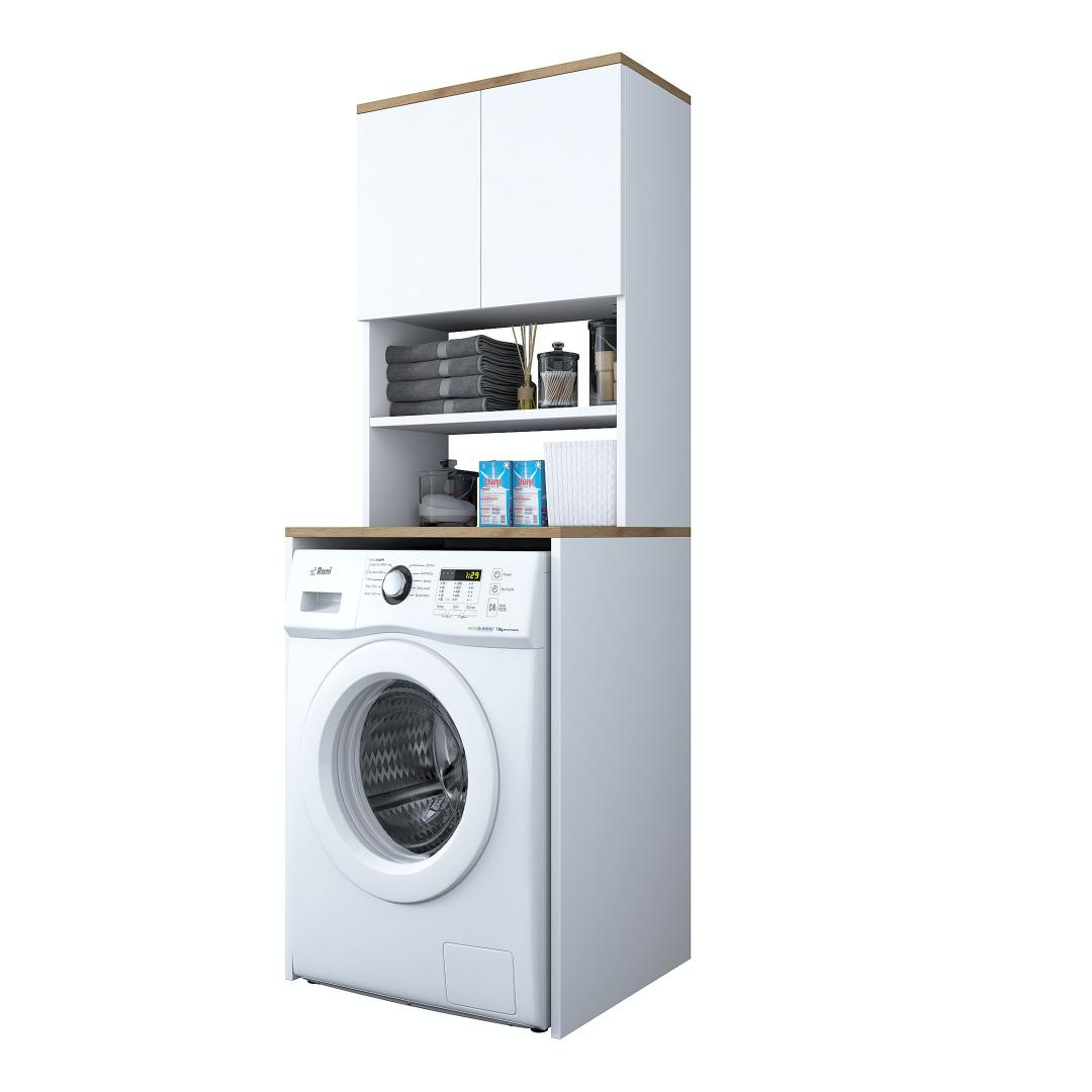 Muunna pesutilasi tyylikkäällä ja toiminnallisella pyykkikaapillaParanna pesutilasi hienolla pyykkikaapilla. Tämä 100-prosenttisesti melamiinipinnoitetusta lastulevystä valmistettu kaappi ei ole ainoastaan kestävä, vaan se myös lisää tilasi tyylikkyyttä. Luo sotkusta vapaa tila runsaalla säilytystilallaRunsas hyllystö ja ylimääräinen kirjahylly, kaappimme tarjoaa runsaasti säilytystilaa kaikille pesutarvikkeillesi. Sano hyvästit sotkuisille työtasoille ja hei hyvin järjestetylle pyykkituvalle.Täydennä kodin sisustusta modernilla ja uudenlaisella muotoilullaKirkkaan värinen ja moderni muotoilu, pyykkikaappi sulautuu vaivattomasti mihin tahansa kodin sisustukseen. Valkoisen ja pähkinäpuun väriyhdistelmä tuo tilaan hienostuneisuutta, mikä tekee siitä pesutilasi keskipisteen. Rakennettu kestävyyttä ja lujuutta vartenTämä kaappi on valmistettu 18 mm paksusta melamiinipinnoitetusta lastulevystä kestävyyden ja lujuuden takaamiseksi. Se kestää helposti pesukoneesi ja muiden tavaroiden painon ja tarjoaa sinulle luotettavan säilytysratkaisun vuosiksi eteenpäin. Tekniset tiedot:Materiaali:Materiaali:100% melamiinipinnoitettu lastulevyPaksuus:18mmLeveys:65cm,Korkeus:183.6cm,Syvyys:60cmTilan hyllykoko:Leveys:65cm,Korkeus:91.8cm,Syvyys:30cmVoidaan kiinnittää seinään lisää vakautta ja turvallisuuttaVärjennä pyykkihuoneesi jo tänään pyykkikaapillamme ja nauti sotkusta vapaasta ja tyylikkäästä tilasta. Tilaa nyt ja koe toiminnallisuuden ja tyylikkyyden täydellinen yhdistelmä. Väri: Valkoinen pähkinä