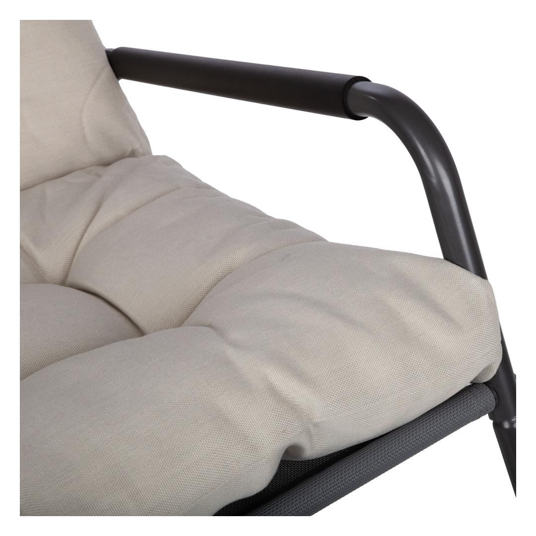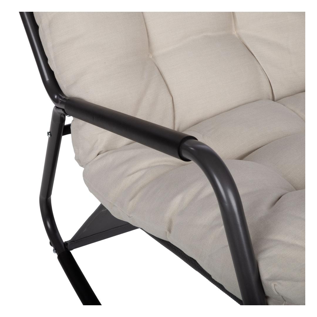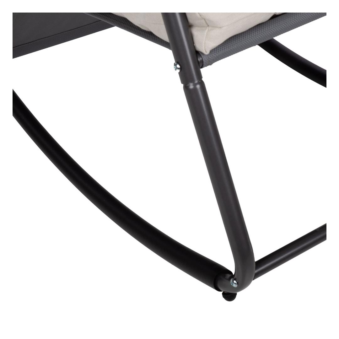 The frame and legs of the rocking chair are made of steel and finished with a dark grey powder coating.