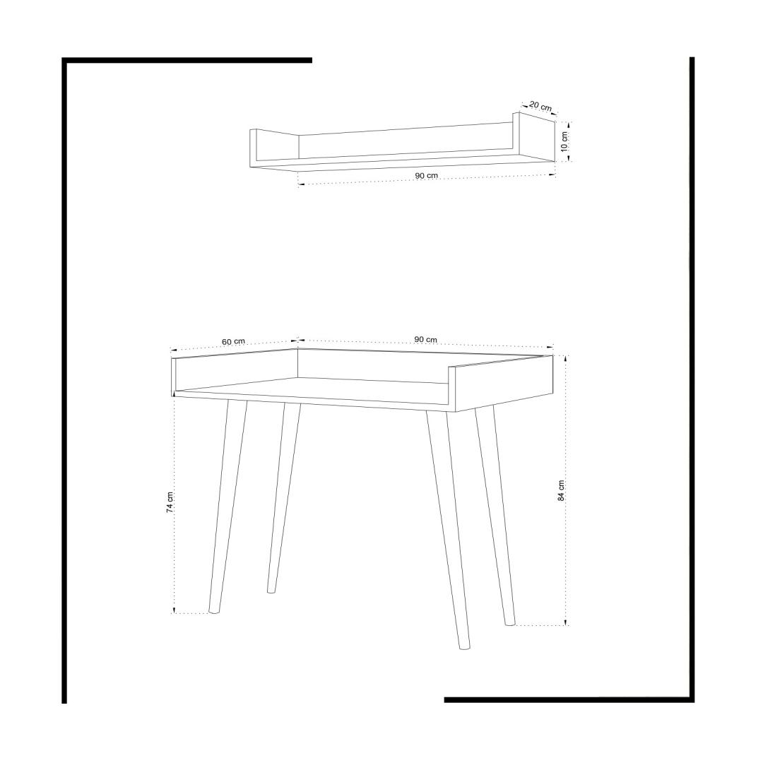 - Desk Size: Width: 90 cm, Height: 84 cm, Depth: 60 cm