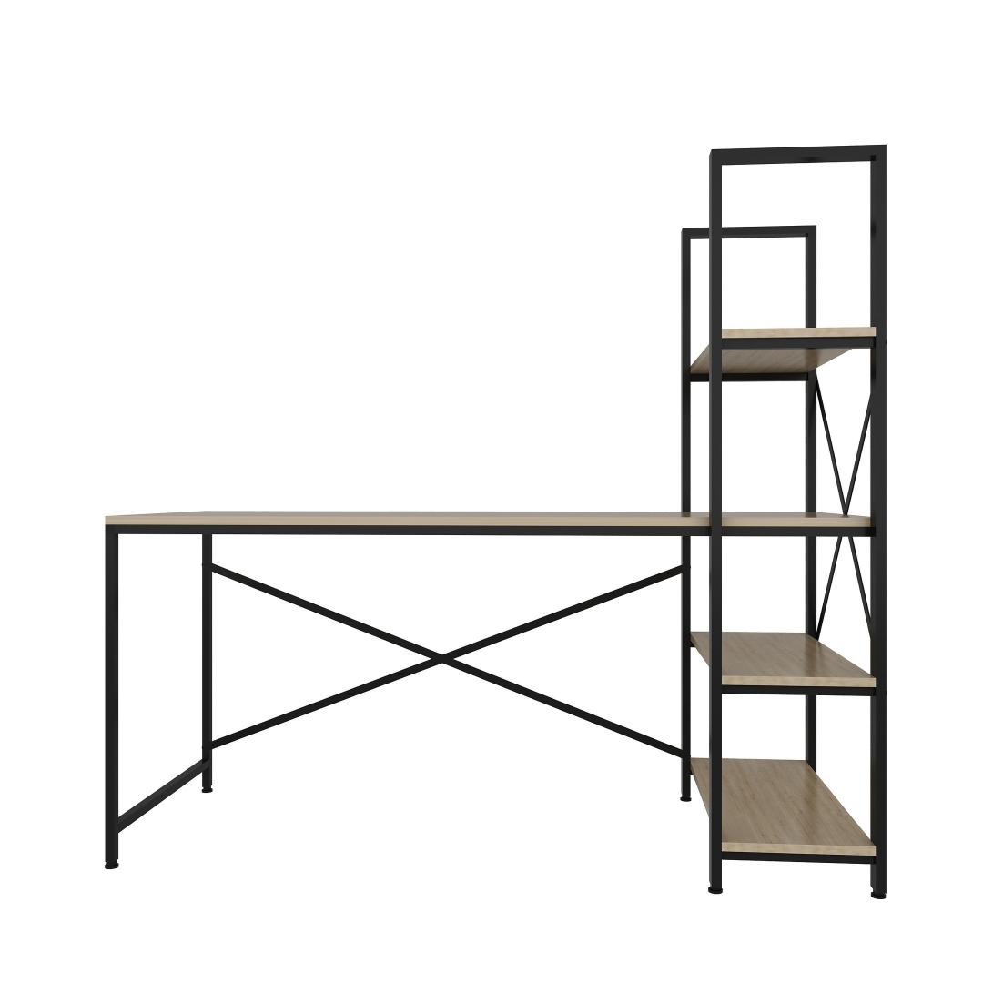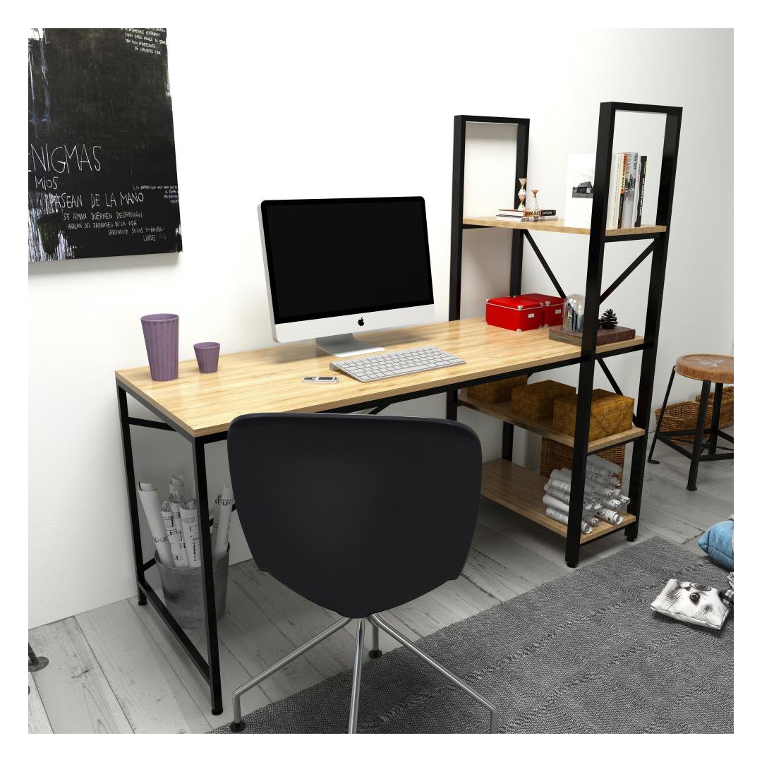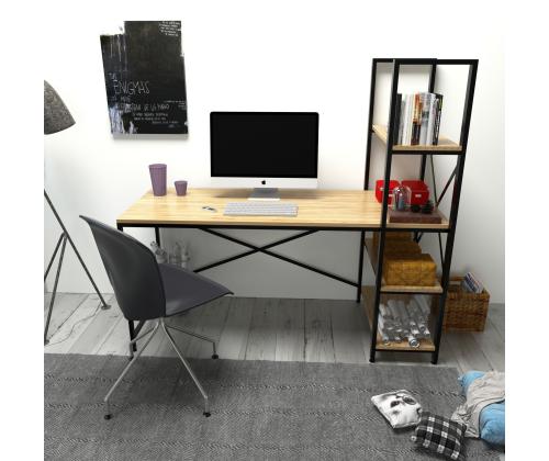 Crafted from 100% melamine coated particle board, this Study Desk is built to last. The 18 mm thickness ensures sturdiness and stability, while the metal frame adds an industrial touch to its overall design. The combination of oak and black colors creates a sophisticated and contemporary look that will effortlessly blend with any decor.
