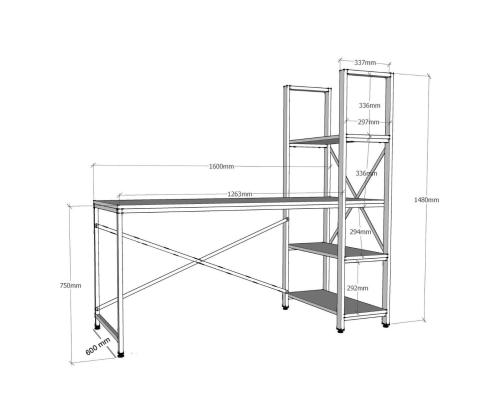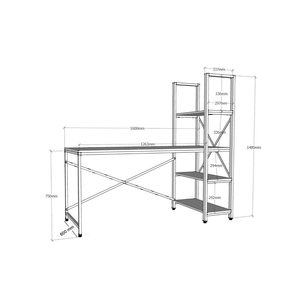 - Study Desk Total Size: Width: 160 cm, Height: 148 cm, Depth: 60 cm