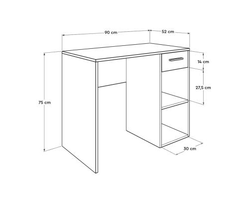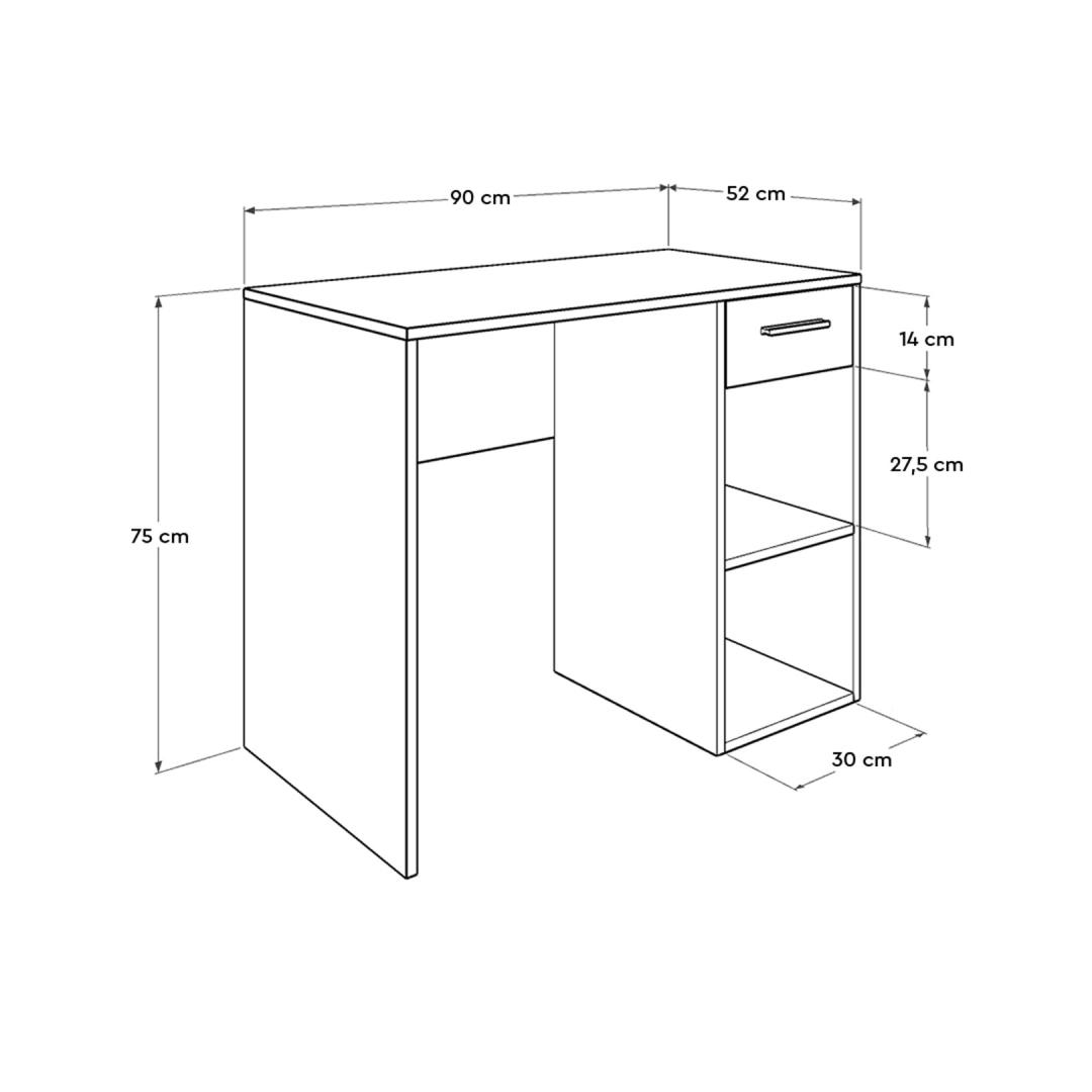 Loo täiuslik õpikeskkond meie õppelauaga!Muuda oma õpperuum meie õppelaua abil produktiivsuse ja inspiratsiooni paradiisiks. See ülima hoolikusega valminud ja kõigile teie õppimisvajadustele vastav laud on igale õpilasele hädavajalik. Sukeldu meie õppelaua abil võimaluste maailma. Selle elegantne ja moodne disain tõstab koheselt teie õpperuumi esteetikat, luues rahulikku ja kutsuvat õhkkonda, mis soodustab keskendumist ja keskendumist.Meie töölaud on valmistatud 100% melamiiniga kaetud puitlaastplaadist, mis kestab kaua. Selle tugev konstruktsioon tagab vastupidavuse, mis võimaldab teil nautida aastaid katkematut õppimist ja õppimist. Jääge organiseerituks ja segadusteta tänu arvukatele riiulitele ja mugavale sahtlile. Hoidke oma raamatud, kirjatarbed ja õppematerjalid käeulatuses, mis muudab akadeemilise mängu üleval hoidmise lihtsamaks kui kunagi varem. Meie õppelaua mitmekülgse disainiga saab kinnitada seinale, mis maksimeerib teie põrandapinda ja tagab õmblusteta integreerumise teie õpperuumi. Meie õppelaua soliidne valge värvus õhkab elegantsust ja rafineeritust, luues rahustava õhkkonna, mis parandab teie õppimiskogemust. Investeeri oma tulevikku ja loo meie õppelauaga ideaalne õpikeskkond. Tellige kohe ja avage oma täielik potentsiaal!Tehnilised üksikasjad:Materjal: materjal: 100% melamiiniga kaetud puitlaastplaatPaksus: 16 mmLaua mõõtmed: Laius: 90 cm, kõrgus: 75 cm, sügavus: 52 cm.Riiuli mõõtmed: Laius: 30 cm, kõrgus: 27. 5 cm, sügavus: 52 cm.Omadused: 1 sahtli, arvukalt riiuleidVõimalik kinnitada seina külge stabiilsuse lisamiseksVärv: valge Värv: White