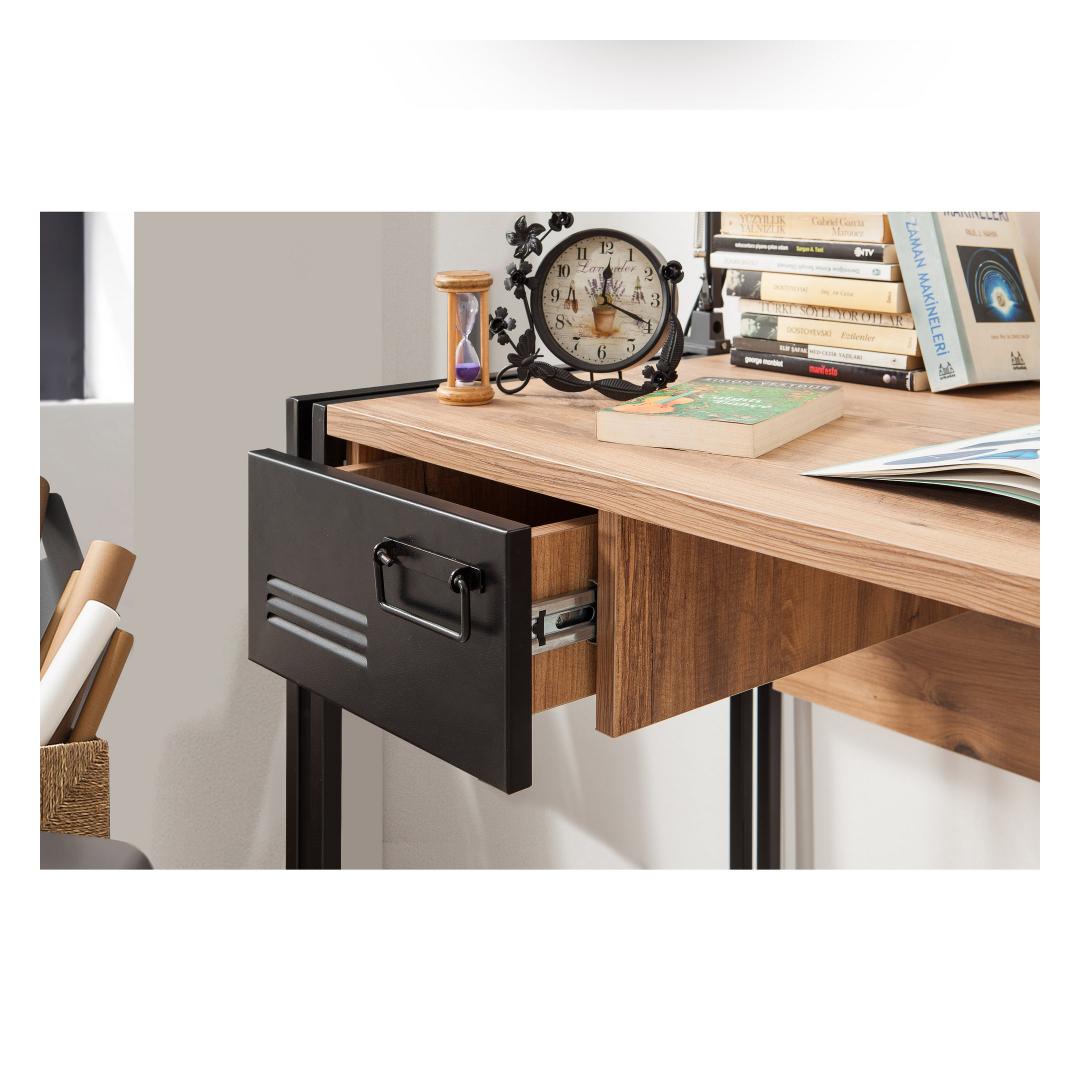 With a width of 139cm, height of 75cm, and depth of 60cm, our study desk provides a generous workspace for you to unleash your creativity. The sleek design, combining Atlantic Pine and Black colors, adds a modern and industrial touch to your study space, creating an atmosphere that inspires productivity.