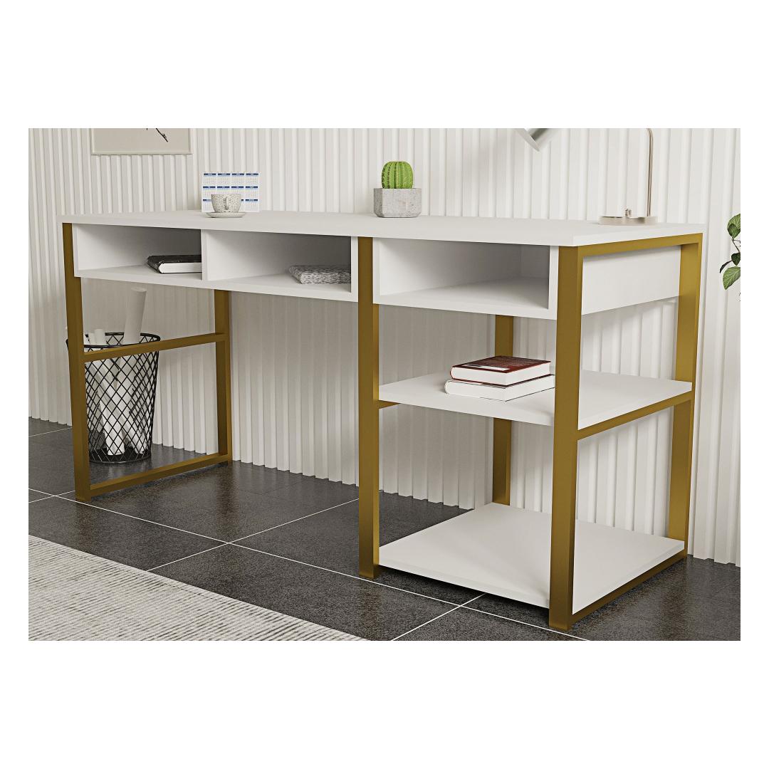 The study desk features a stunning combination of white and gold colors, adding a touch of sophistication to any study space. The elegant design will effortlessly blend with any interior decor, making it a versatile choice for both home and office environments.
