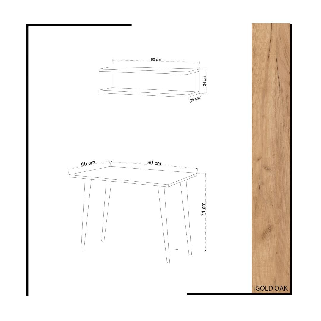 With a width of 80 cm, height of 74 cm, and depth of 60 cm, our study desk provides ample space for all your study essentials. Whether you're working on a project or studying for exams, this desk offers enough room to spread out your books, laptop, and other materials. Plus, the included wall shelf with a width of 80 cm, height of 24 cm, and depth of 20 cm allows you to keep your workspace clutter-free and organized.