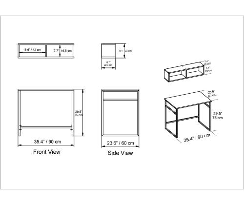 Study Desk Size: Width: 90 cm Height: 75 cm Depth: 60 cm