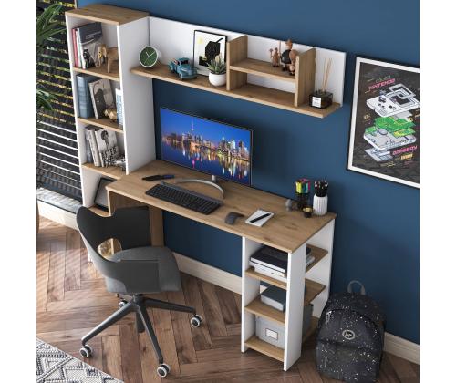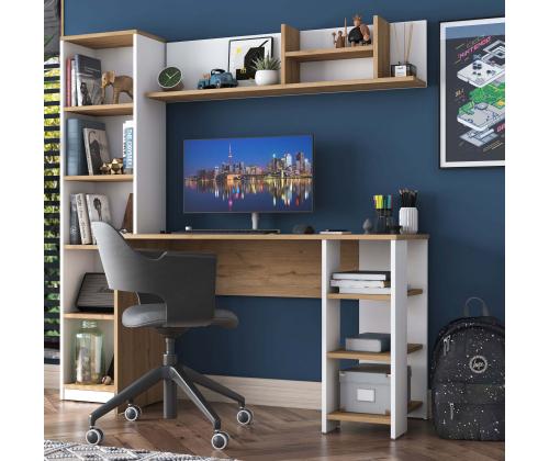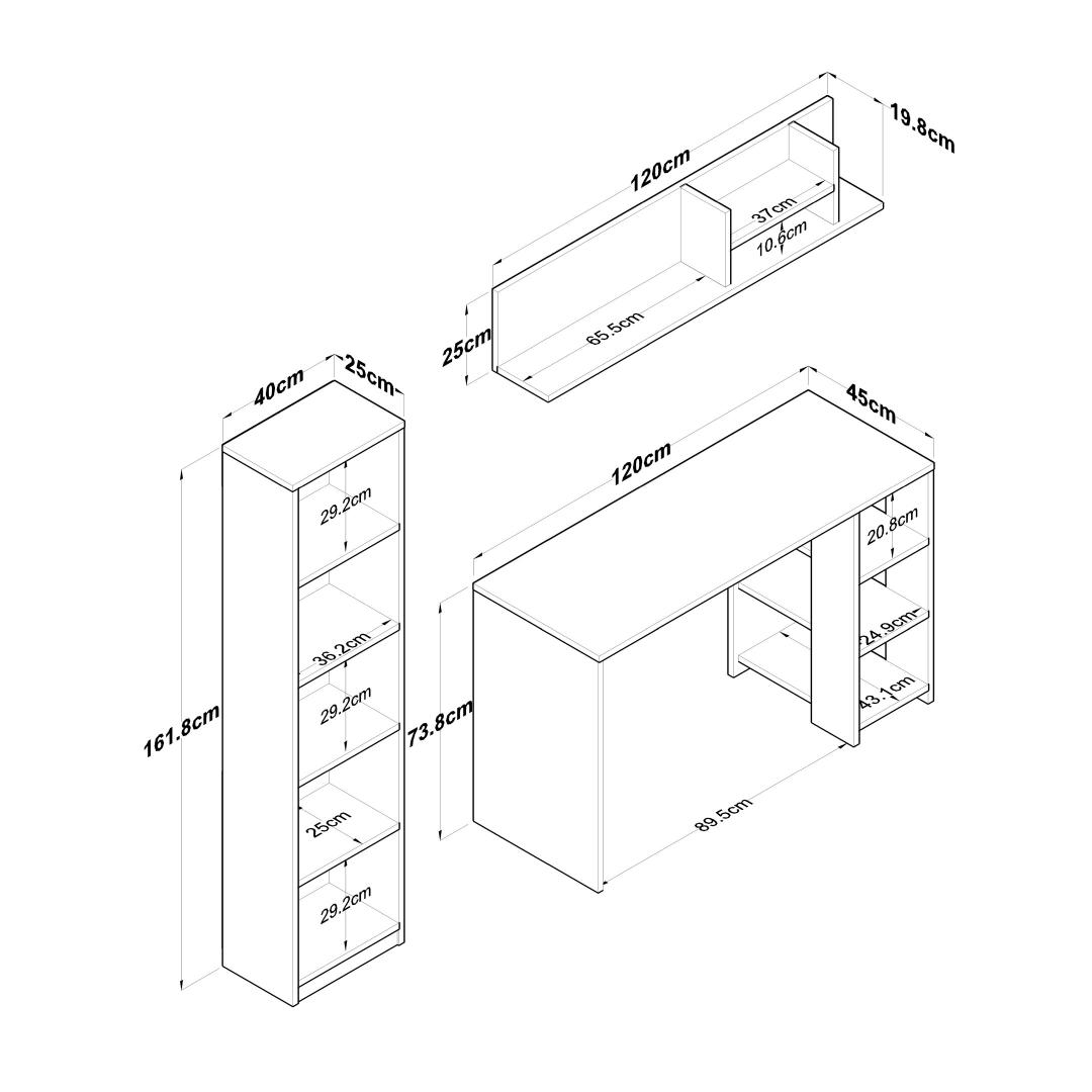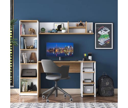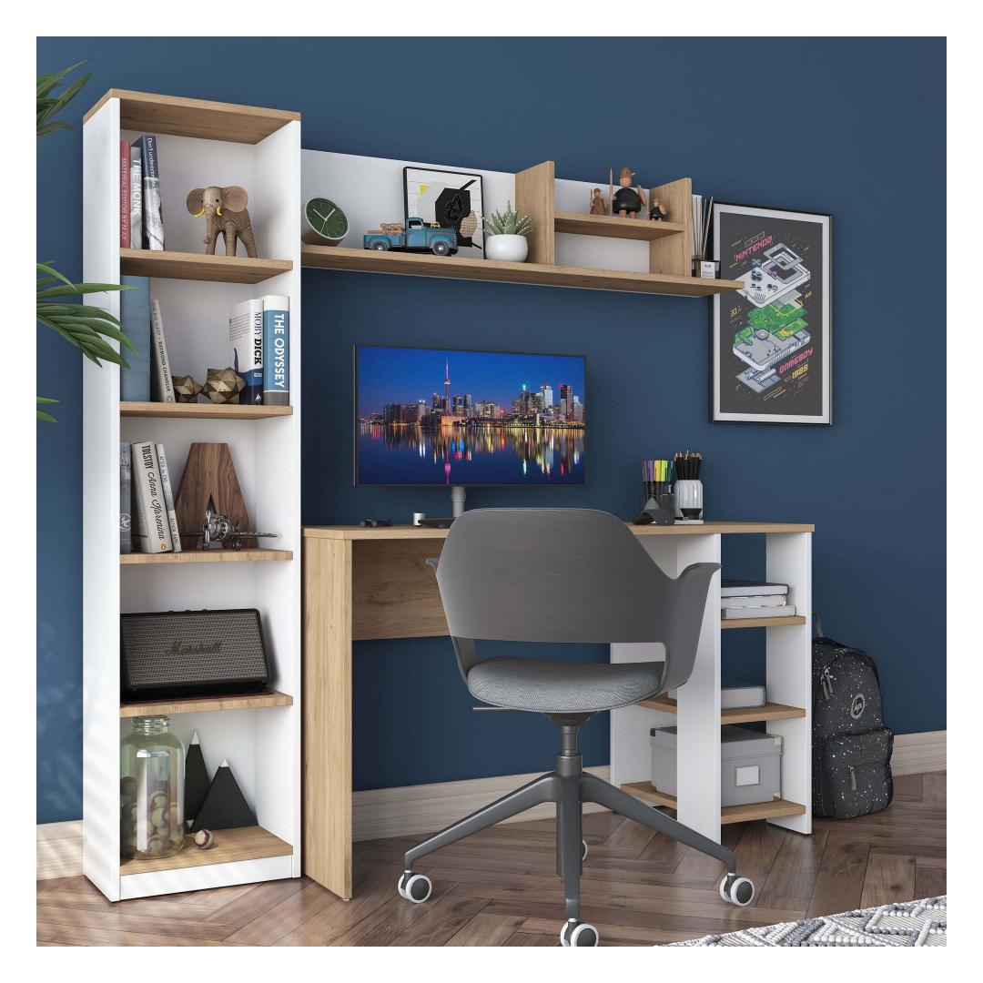Muuda oma õpingute ruum produktiivsuse ja organiseerituse pelgupaigaks meie kauni õpingute laua abil. Valmistatud 100% melamiinkattega E1 kvaliteediga puitlaastplaadist, on see laud mitte ainult vastupidav, vaid ka kiirgab stiilset ja modernset esteetikat, mis tõstab esile iga ruumi.Hoia end organiseerituna ja inspireeritunaPaljude riiulite ja lisalao võimalustega saad hoida kõik oma õpingute tarvikud käeulatuses, võimaldades sul keskenduda ja olla inspireeritud kogu oma tööaja jooksul. Laua saab ka seina külge kinnitada, et tagada lisastabiilsus ja ohutus, muutes selle ideaalseks väikeste ruumide või lastega kodude jaoks.Mitmekülgne ja stiilneSelle laua mitmeotstarbeline disain teeb sellest ideaalse valiku üliõpilastele, professionaalidele või kõigile, kes vajavad pühendatud tööruumi. Pähklipuu ja valge värvikombinatsioon lisab igale ruumile elegantsi, samas kui avarad mõõtmed pakuvad piisavalt ruumi kõigi sinu õpingute materjalide jaoks.Tehnilised andmed:Materjal: 100% melamiinkattega E1 kvaliteediga puitlaastplaatMõõtmed: Laius 160 cm, Kõrgus 161,8 cm, Sügavus 45 cmVärv: Pähklipuu ja valgePalju riiuleid ladustamiseksLisalao võimalusedSaab kinnitada seina külge lisastabiilsuse tagamiseks Värv: Walnut White