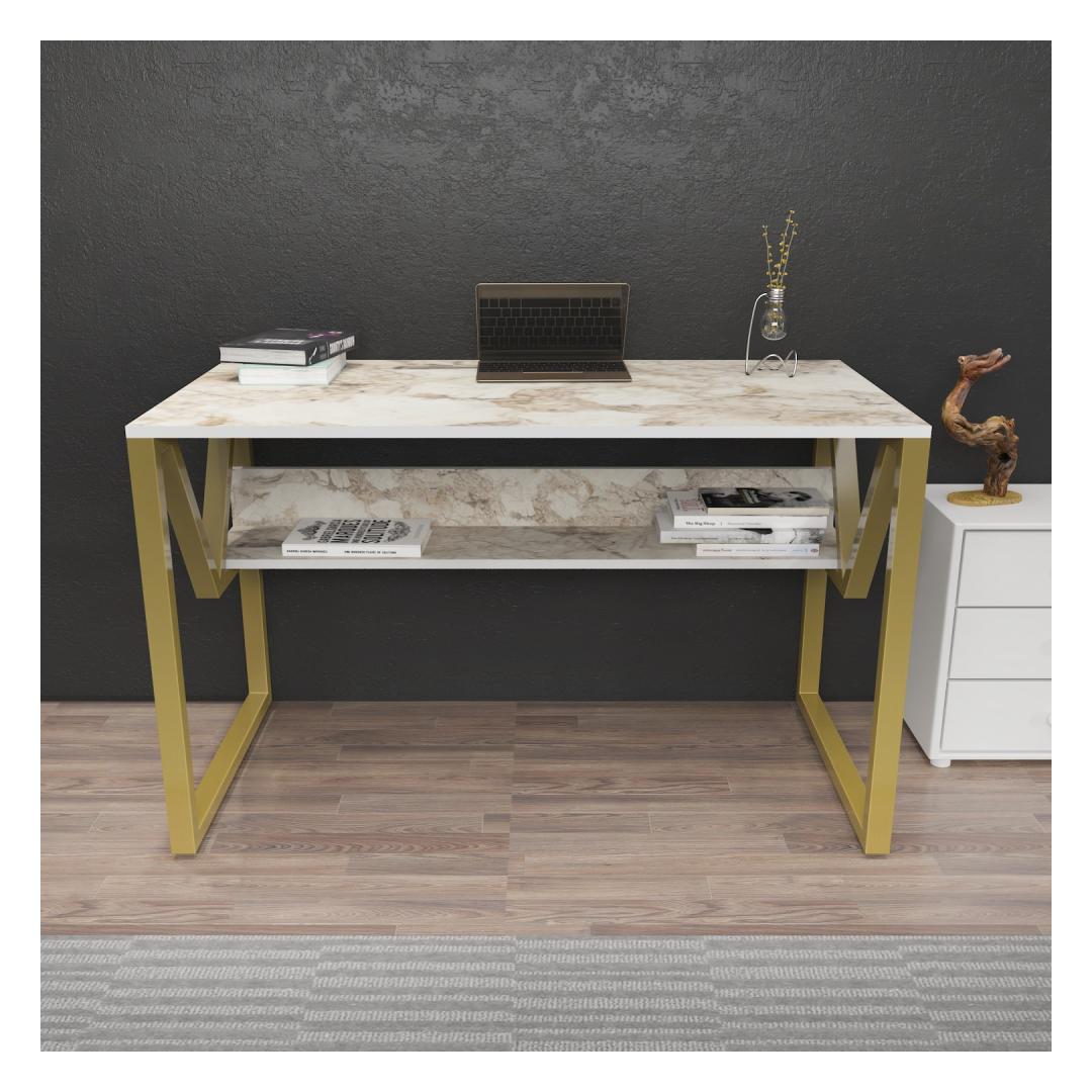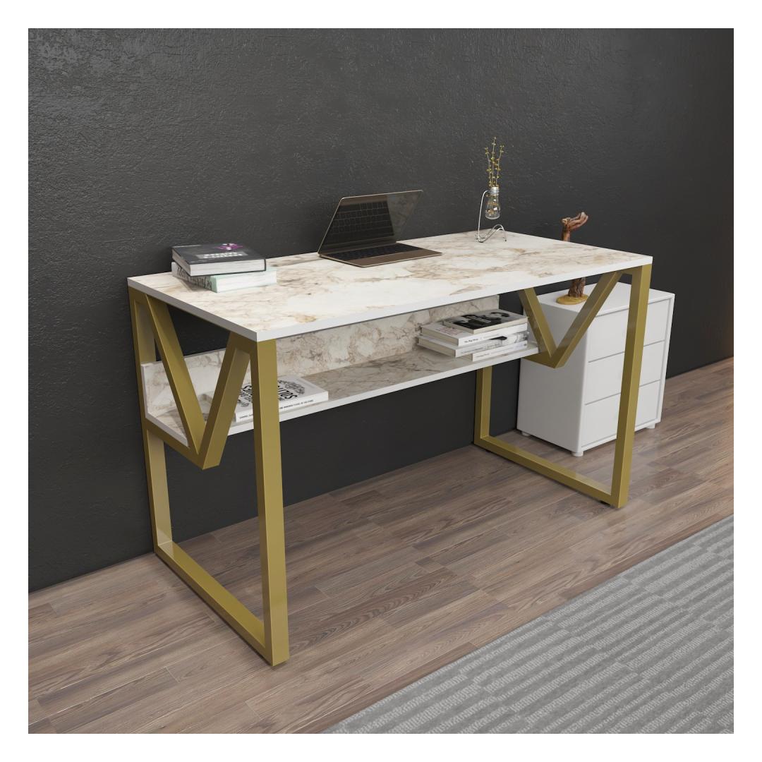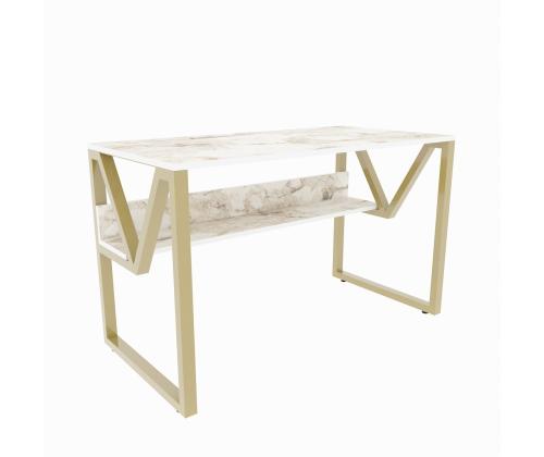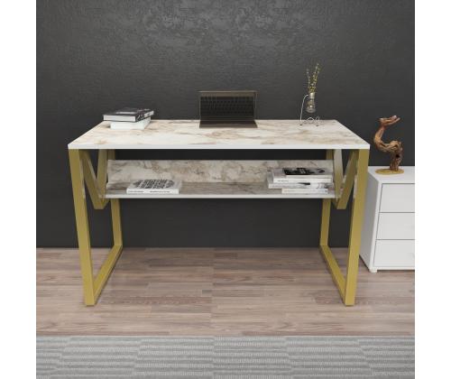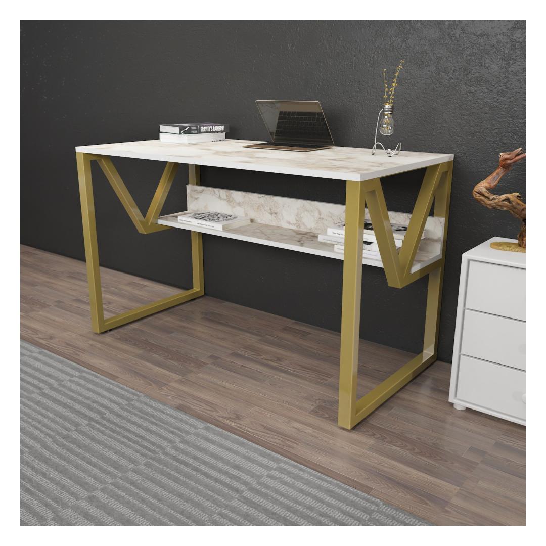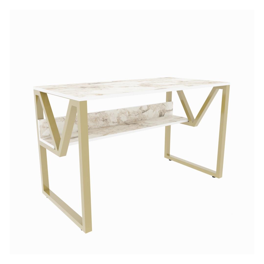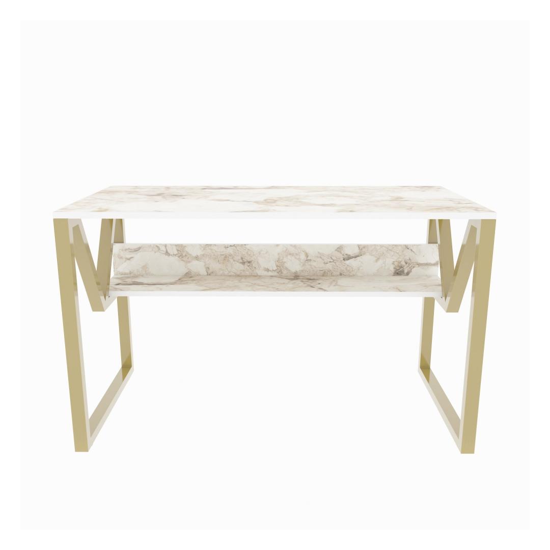 Study Desk Lona - White, Gold